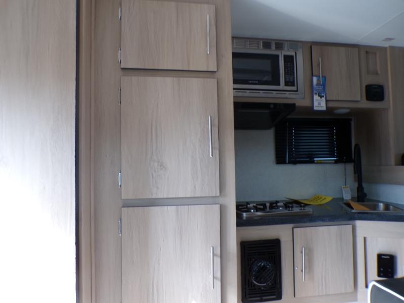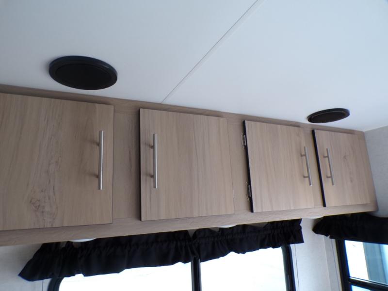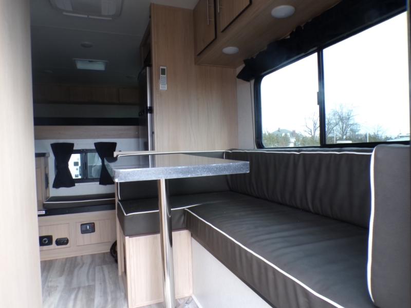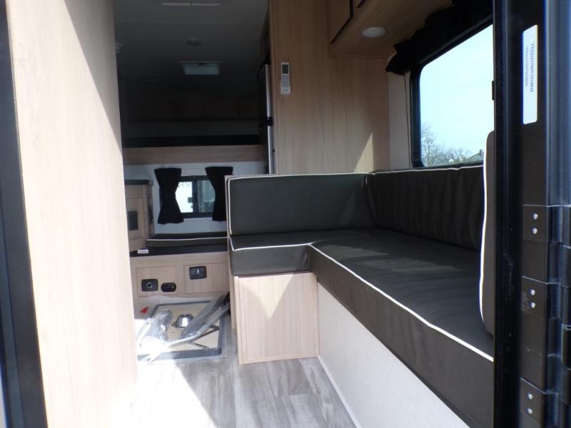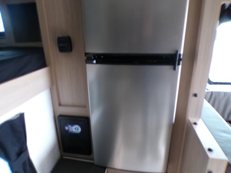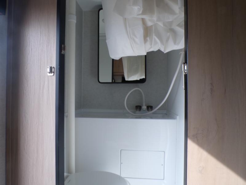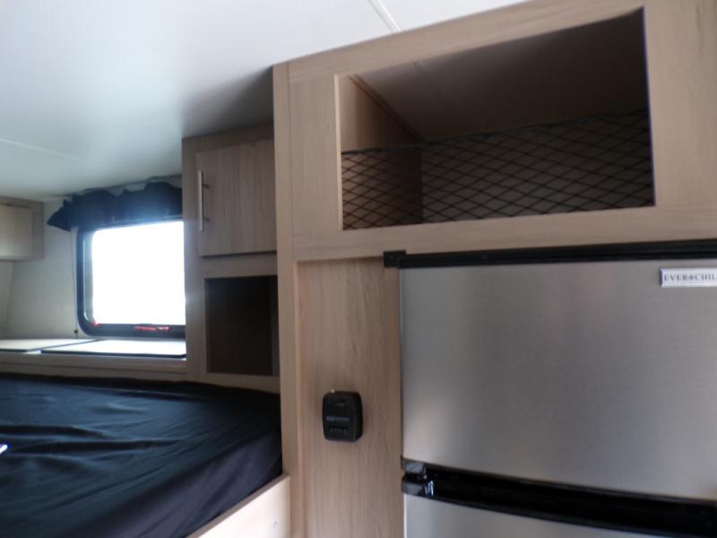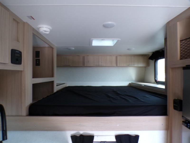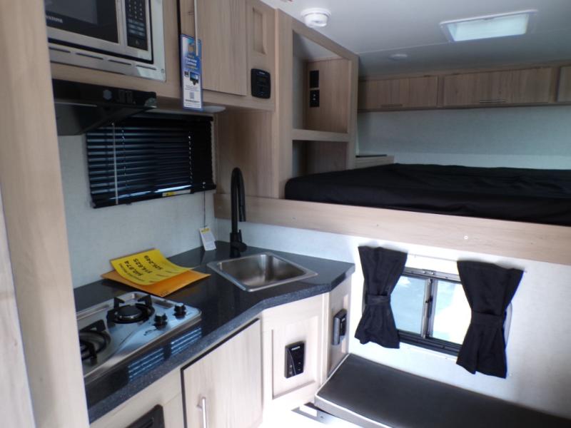 This truck camper has everything you need while you're away from home! There is a queen-size bed up front with footlockers with USB ports and additional storage for your belongings. And the sofa with a bunk above will provide additional sleeping space for guests. You can prepare meals on the two burner stainless steel stove or in the stainless steel microwave, and the 12V refrigerator will be perfect for cold items. There is also a wardrobe/pantry that can be used for storage. This model includes a convenient wet bath with a sliding door, so you won't even have to use the camp's facilities when you stop for the night!