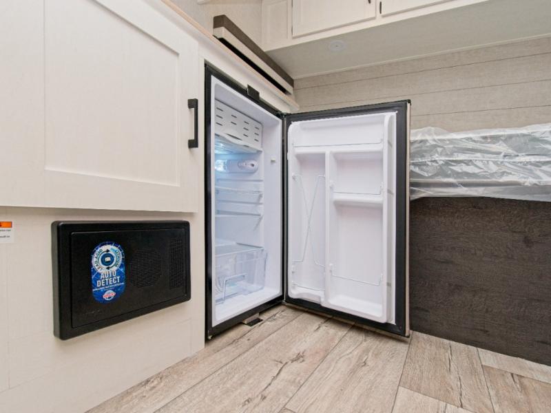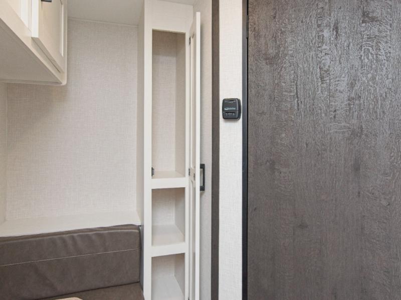 Premium Interior Touches: Modern rail-style cabinet doors, residential-grade linoleum, LED lighting, and a Bluetooth stereo with USB connectivity bring style and function together.