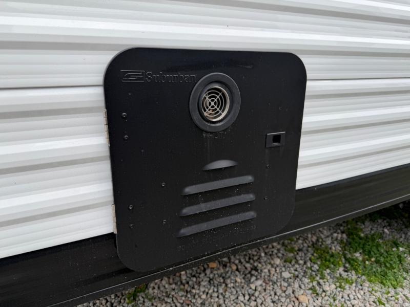 Elevate your travel experience with Venture RV Campbound travel trailers, where every journey is a great one, combining rugged construction with luxurious comfort for the ultimate adventure season. The BAL frame, with American steel and powder-coated & baked, is engineered for durability and strength, ensuring a smooth and stable ride. Dexter axles with EZ lube hubs make towing a breeze, while insulated baggage doors with magnetic catches provide secure and convenient storage. Plus, the Dicor Tufflex PVC walkable roof gives you peace of mind and easy maintenance. Step inside to experience our luxurious interior design, where style meets comfort. You can also enjoy the convenience of a tankless water heater and many other interior features.