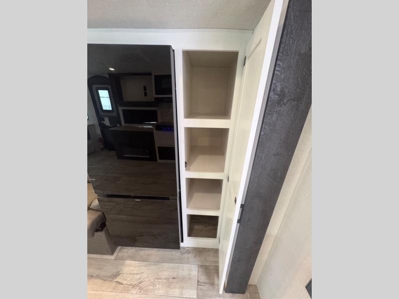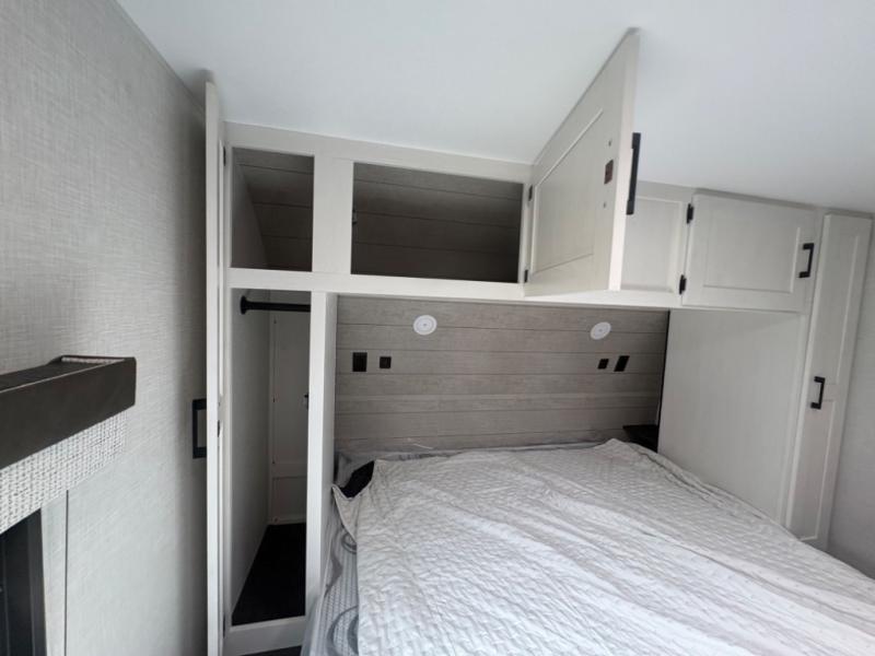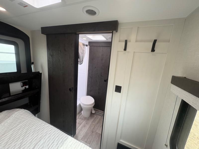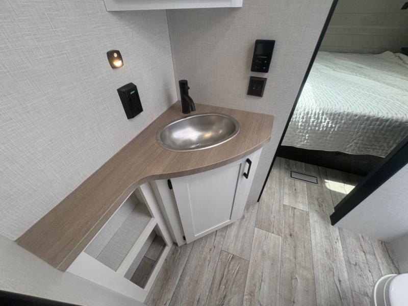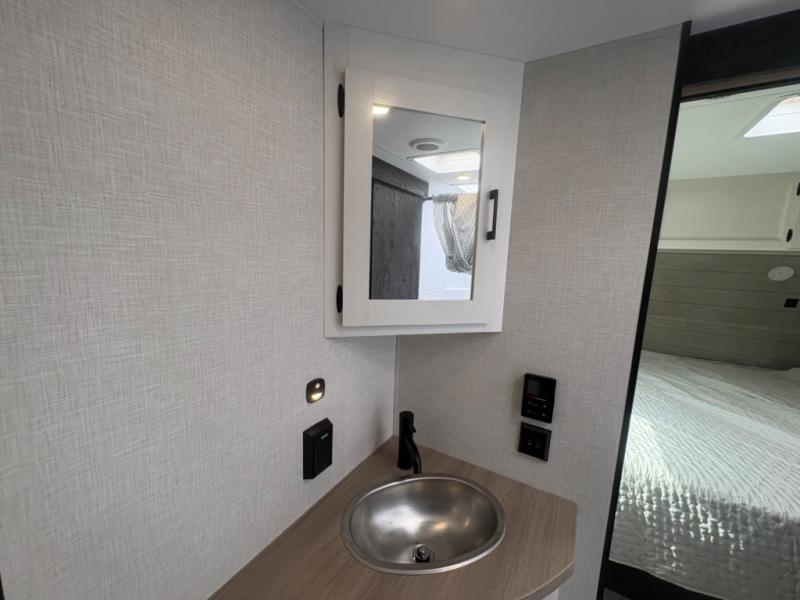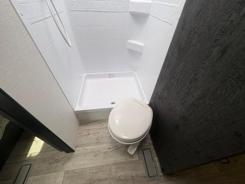 The sleeping area is thoughtfully designed to maximize comfort and storage, offering a relaxing retreat at the end of the day. The bathroom layout is efficient and functional, providing everything you need for convenience on the road. Durable flooring, quality cabinetry, and Venture RV’s proven construction methods ensure this trailer is built to handle real camping, not just fair-weather weekends.