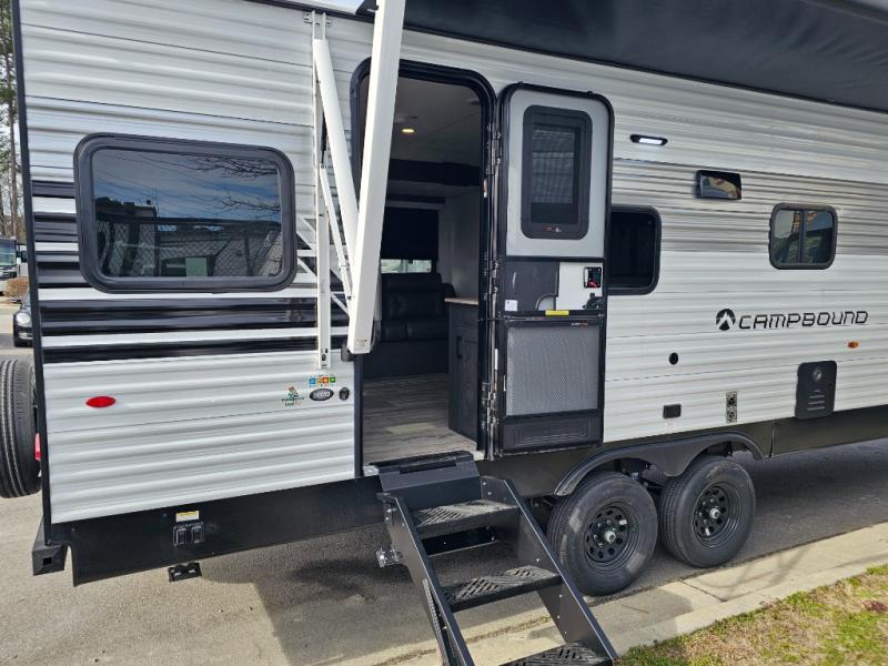 The Campbound CB241CRD blends residential comfort with smart travel-friendly design. Featuring a spacious front bedroom with a king bed, a walk-thru bath, and an inviting living area with a fireplace, this travel trailer is built for relaxing weekends or extended stays.
