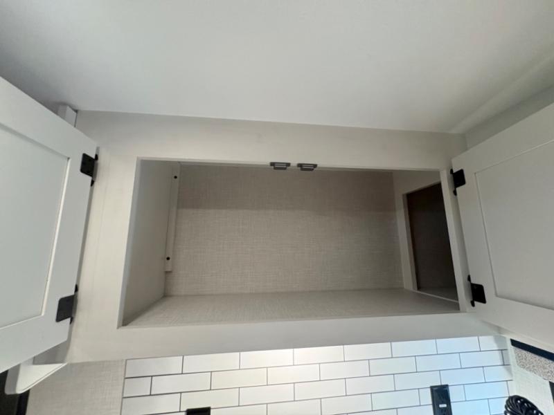 - Bathroom: Oversized rear bath with roomy shower and linen storage