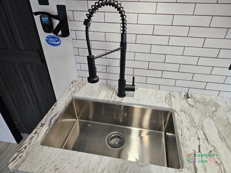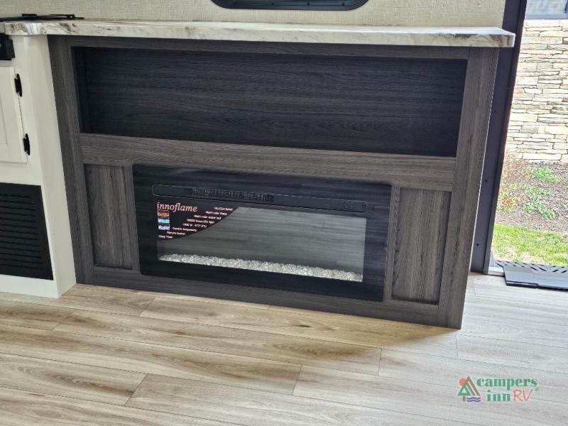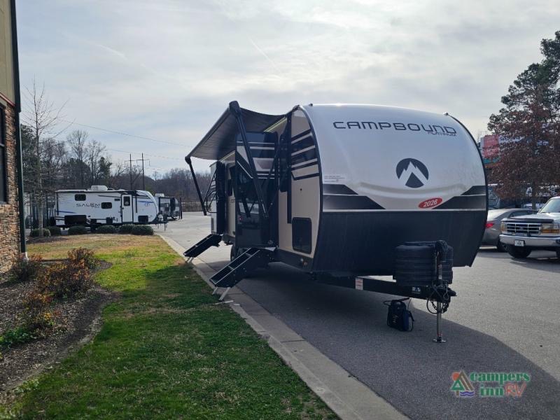 Designed to elevate every journey, these Venture RV Campbound Platinum travel trailers blend rugged construction with smart comfort features that make life on the road effortless. Dexter axles with EZ Lube hubs provide smooth towing and simplified maintenance, while power stabilizing jacks allow for quick, steady setup at every campsite. The Weather Shield insulation package, featuring a heated enclosed underbelly and radiant foil insulation, ensures dependable performance across changing climates. Inside, the living space is enhanced by a king-size bed with gas-strut storage supports, offering exceptional comfort along with practical, easy-access organization for life on the move.