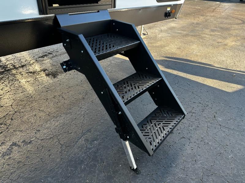 Designed to elevate every journey, these Venture RV Campbound Platinum travel trailers blend rugged construction with smart comfort features that make life on the road effortless. Dexter axles with EZ Lube hubs provide smooth towing and simplified maintenance, while power stabilizing jacks allow for quick, steady setup at every campsite. The Weather Shield insulation package, featuring a heated enclosed underbelly and radiant foil insulation, ensures dependable performance across changing climates. Inside, the living space is enhanced by a king-size bed with gas-strut storage supports, offering exceptional comfort along with practical, easy-access organization for life on the move.