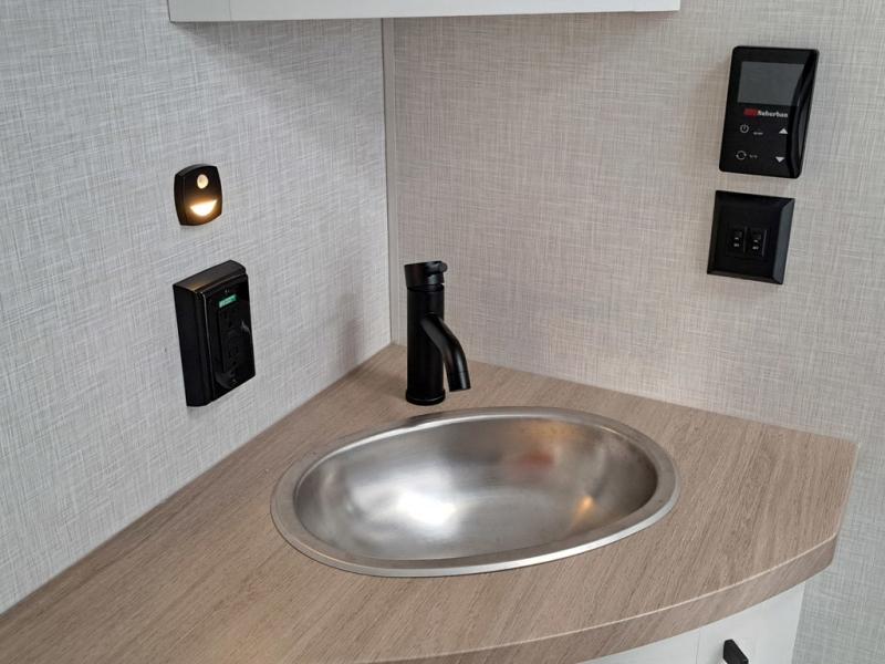 With any Sienna travel trailer by Venture RV, you will enjoy a lightweight unit, convenient amenities, and a durable construction that includes a BAL NXG-bolted frame. There is also a heated and enclosed one-piece underbelly, residential fiberglass insulation, and a reflective PVC roof membrane within the Weather-Shield Package to help extend your camping season. Outside, the BAL 5.0 power stabilizer jacks and power tongue jack will have you set up in no-time, and the Venture RV bottle opener/dog tie down will make it easy to bring your furry friends along. Head inside to enjoy the modern farmhouse design, along with Beauflor throughout with no carpet, custom backsplash, large underbed storage, and a bath skylight to name a few comforts!