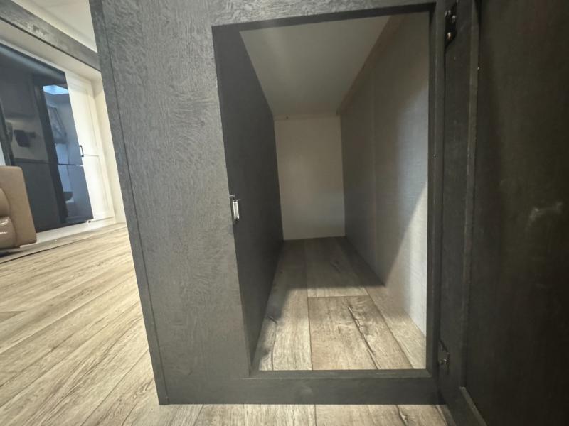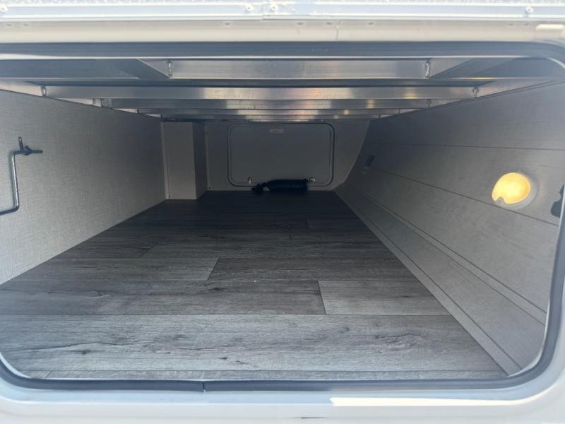 Outdoor Convenience: The large power awning with LED lighting, exterior speakers, and pass-through storage make outdoor living easy and enjoyable.