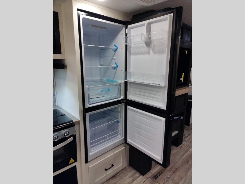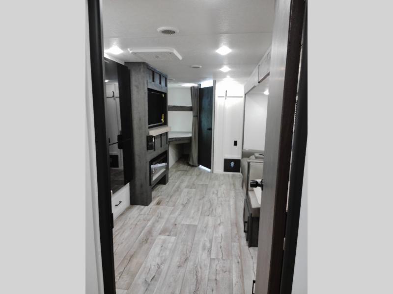 You'll love every minute spent in this bunkhouse travel trailer. The front private bedroom includes a Sleep Tight queen bed, dual wardrobes, and TV prep if you want the option to watch movies in bed. Your crew can relax on the sofa or Sit N' Slide table within the large slide out and watch a movie with the Smart TV. Since there is an outdoor griddle and refrigerator plus a 20' power awning, you may just find yourselves outside most days! When it's time to call it a night, there are double-size bunks in the rear corner for your guests, and the full bath is right next to the bunks for easy nighttime use. This unit also includes an entryway pantry with washer and dryer prep, making it easier to go full-time if you choose!