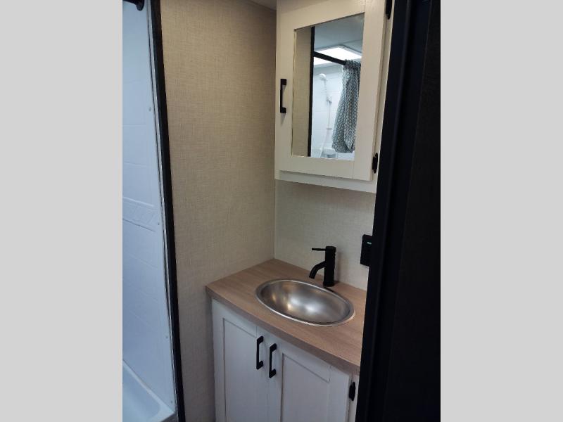 With any Sienna travel trailer by Venture RV, you will enjoy a lightweight unit, convenient amenities, and a durable construction that includes a BAL NXG-bolted frame. There is also a heated and enclosed one-piece underbelly, residential fiberglass insulation, and a reflective PVC roof membrane within the Weather-Shield Package to help extend your camping season. Outside, the BAL 5.0 power stabilizer jacks and power tongue jack will have you set up in no-time, and the Venture RV bottle opener/dog tie down will make it easy to bring your furry friends along. Head inside to enjoy the modern farmhouse design, along with Beauflor throughout with no carpet, custom backsplash, large underbed storage, and a bath skylight to name a few comforts!