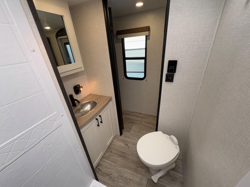 With any Sienna travel trailer by Venture RV, you will enjoy a lightweight unit, convenient amenities, and a durable construction that includes a BAL NXG-bolted frame. There is also a heated and enclosed one-piece underbelly, residential fiberglass insulation, and a reflective PVC roof membrane within the Weather-Shield Package to help extend your camping season. Outside, the BAL 5.0 power stabilizer jacks and power tongue jack will have you set up in no-time, and the Venture RV bottle opener/dog tie down will make it easy to bring your furry friends along. Head inside to enjoy the modern farmhouse design, along with Beauflor throughout with no carpet, custom backsplash, large underbed storage, and a bath skylight to name a few comforts!