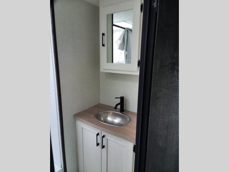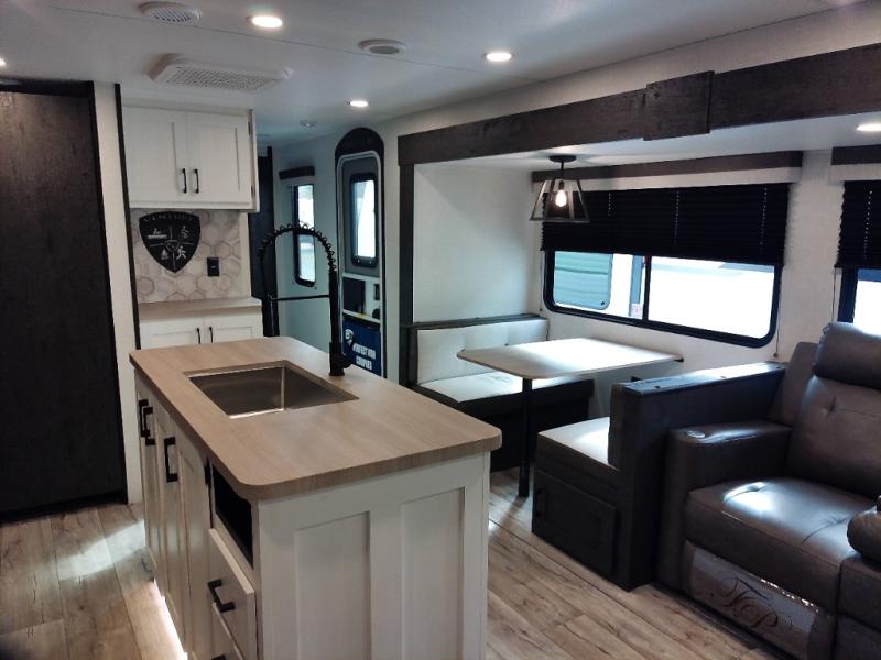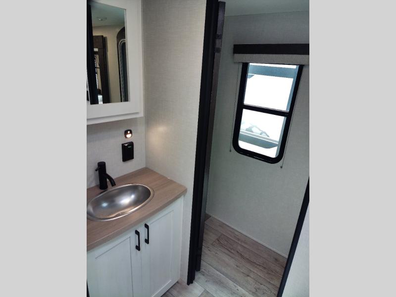 With any Sienna travel trailer by Venture RV, you will enjoy a lightweight unit, convenient amenities, and a durable construction that includes a BAL NXG-bolted frame. There is also a heated and enclosed one-piece underbelly, residential fiberglass insulation, and a reflective PVC roof membrane within the Weather-Shield Package to help extend your camping season. Outside, the BAL 5.0 power stabilizer jacks and power tongue jack will have you set up in no-time, and the Venture RV bottle opener/dog tie down will make it easy to bring your furry friends along. Head inside to enjoy the modern farmhouse design, along with Beauflor throughout with no carpet, custom backsplash, large underbed storage, and a bath skylight to name a few comforts!