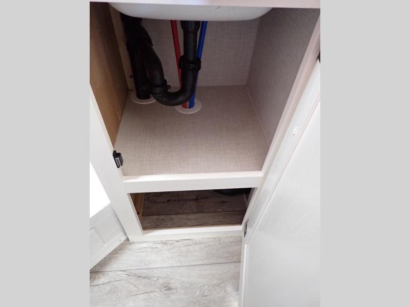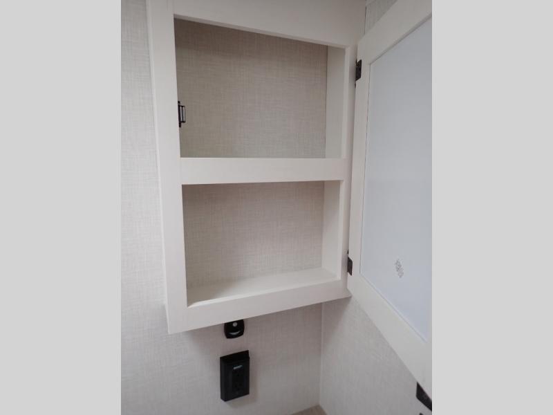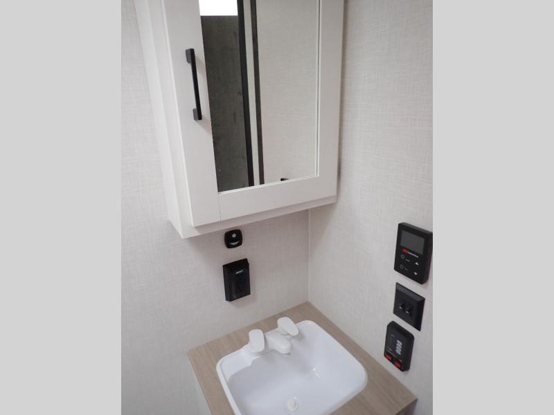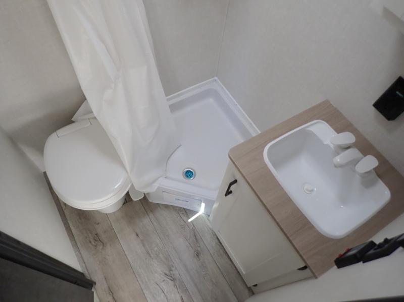 While its sleek all-white exterior suggests a traditional design, the Sienna is anything but ordinary. Step inside to experience a modern and calming palette of surfside white, soft grays, and neutral tones, creating a serene and inviting space perfect for every adventure.