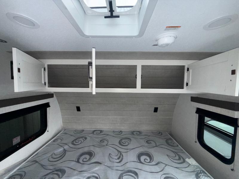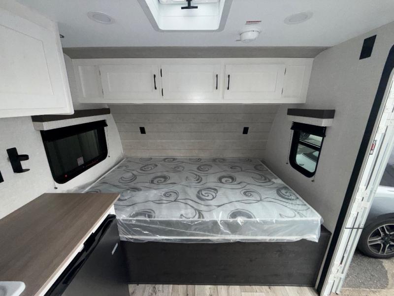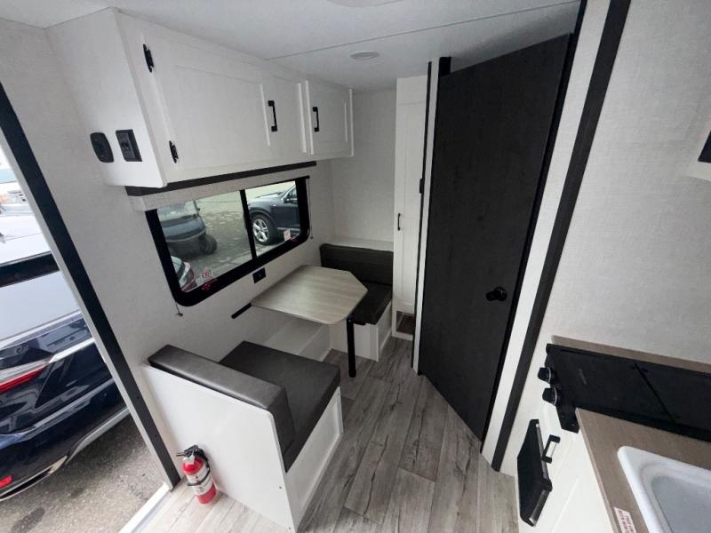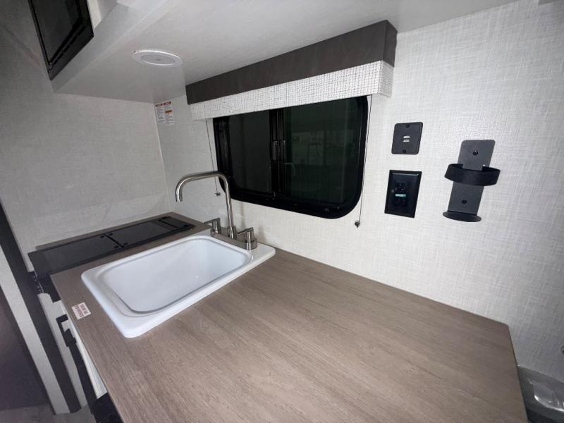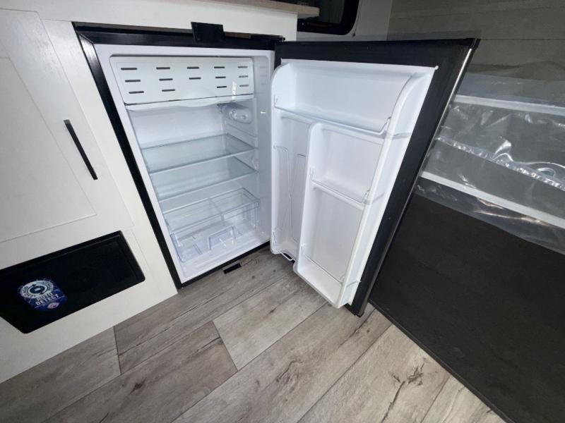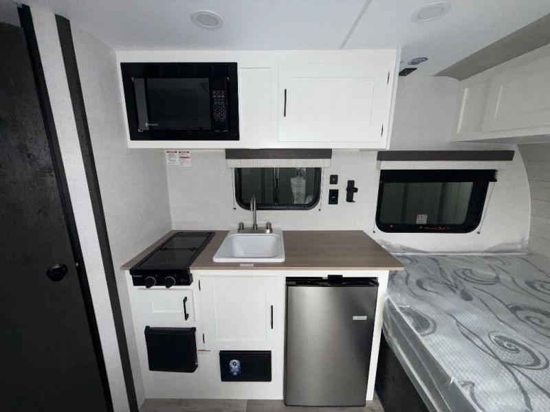 You’re going to love how efficient and comfortable this Sienna Lite 130 travel trailer feels for its size! The kitchen includes a 3.3 cu. ft. refrigerator and an overhead cabinet to keep snacks and essentials organized, and the slide table gives you a convenient spot to eat, work, or plan the day. When it’s time to wind down, the 54" x 80" bed offers a cozy place to recharge, and the 27" x 27" shower in the dry bath makes it easy to freshen up without relying on campground facilities.