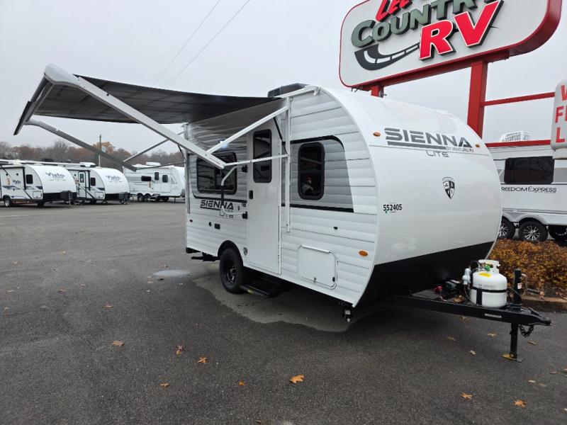 The Sienna Lite travel trailers focus on simple, smart camping with features that make towing and setup feel effortless. You’ll find comfort-forward essentials like a tankless water heater, Bluetooth speaker, Winegard WiFi prep, 13.5 A/C, and a motion-activated bathroom nightlight, plus thoughtful touches such as an entry door with Clearview window, modern farmhouse-style cabinet doors, and the Pet Defender screen protector. These trailers are designed for confident travel, while conveniences like black tank flush, battery disconnect, observation camera prep, and roof-mounted solar prep help keep every trip easier from start to finish.