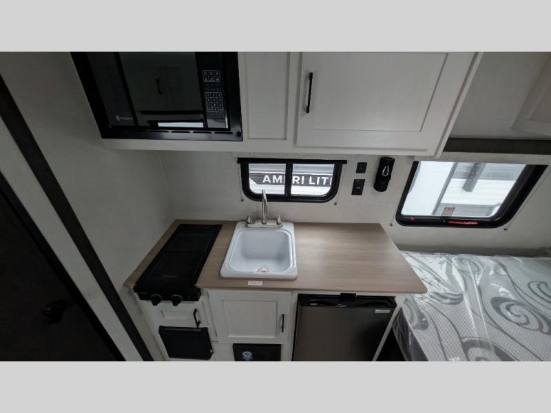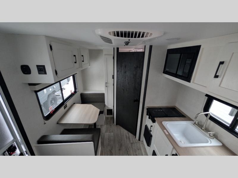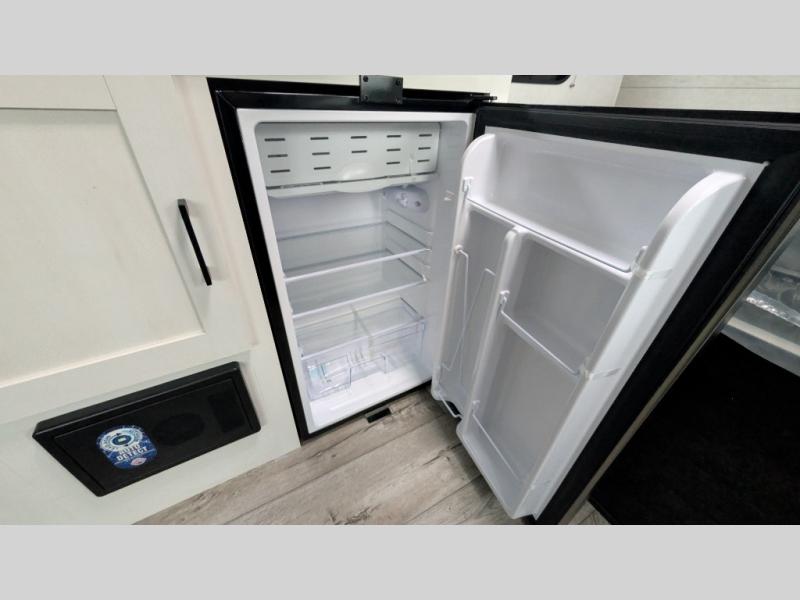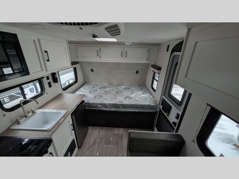 You’re going to love how efficient and comfortable this Sienna Lite 130 travel trailer feels for its size! The kitchen includes a 3.3 cu. ft. refrigerator and an overhead cabinet to keep snacks and essentials organized, and the slide table gives you a convenient spot to eat, work, or plan the day. When it’s time to wind down, the 54" x 80" bed offers a cozy place to recharge, and the 27" x 27" shower in the dry bath makes it easy to freshen up without relying on campground facilities.