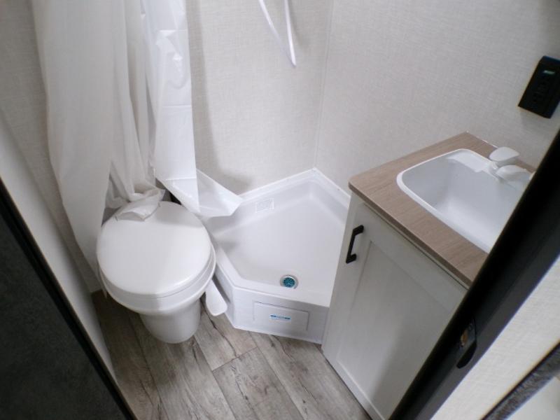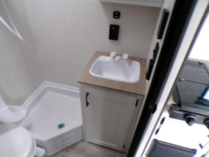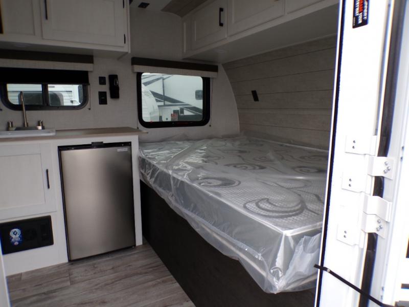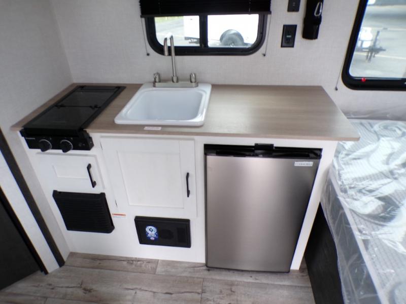 You’re going to love how efficient and comfortable this Sienna Lite 130 travel trailer feels for its size! The kitchen includes a 3.3 cu. ft. refrigerator and an overhead cabinet to keep snacks and essentials organized, and the slide table gives you a convenient spot to eat, work, or plan the day. When it’s time to wind down, the 54" x 80" bed offers a cozy place to recharge, and the 27" x 27" shower in the dry bath makes it easy to freshen up without relying on campground facilities.