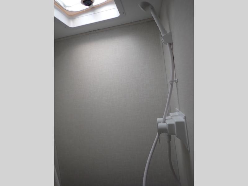 The all new Sienna Lite 140VFD is perfect for a couple. This is a really great little compact teardrop camper. Rear 54 x 80 bed, front dinette, full bath. Unlike similar sized compact RVs, the Sienna Lite 140VFD is NOT a wet bath. It has a 24 x 36 shower.