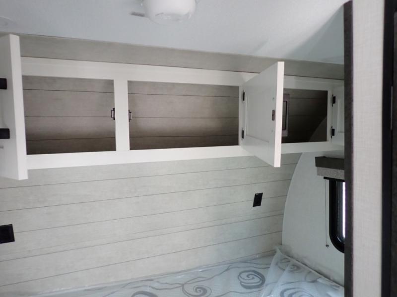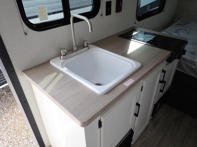 You’re going to love how efficient and comfortable this Sienna Lite 140VFD travel trailer feels for its size! The kitchen includes a 7 cu. ft. 12V refrigerator and an overhead cabinet to keep snacks and essentials organized, and the slide table gives you a convenient spot to eat, work, or plan the day. When it’s time to wind down, the 54" x 80" bed offers a cozy place to recharge.
