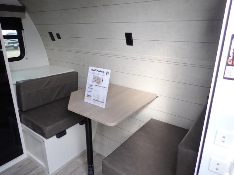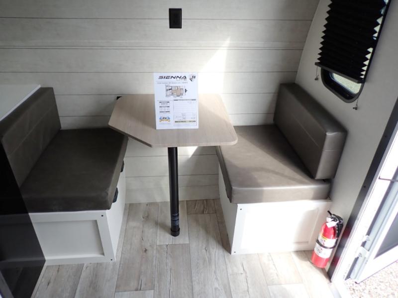 The Sienna Lite travel trailers focus on simple, smart camping with features that make towing and setup feel effortless. You’ll find comfort-forward essentials like a tankless water heater, Bluetooth speaker, Winegard WiFi prep, and a motion-activated bathroom nightlight, plus thoughtful touches such as an entry door with Clearview window, modern farmhouse-style cabinet doors, and the Pet Defender screen protector. These trailers are designed for confident travel, while conveniences like black tank flush, battery disconnect, observation camera prep, and side-mounted solar prep help keep every trip easier from start to finish.