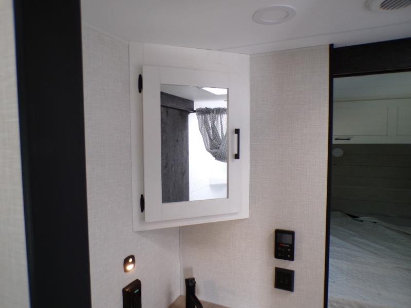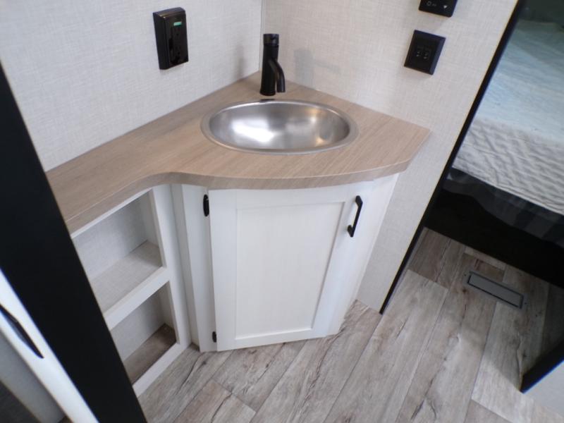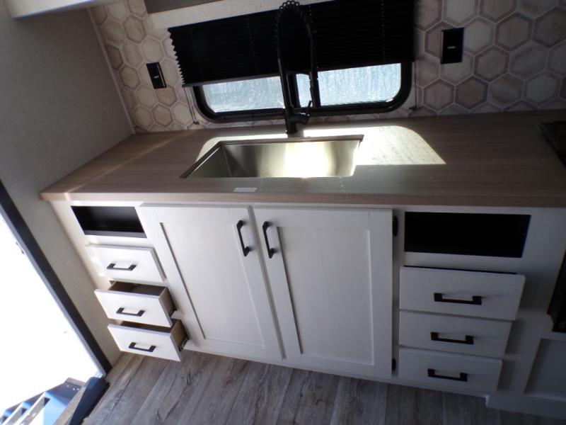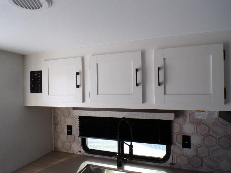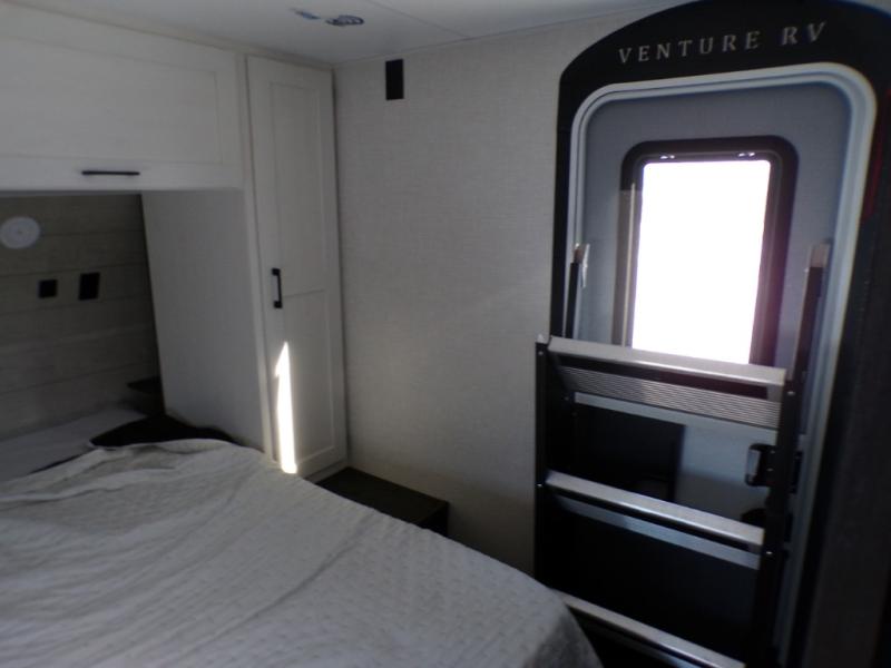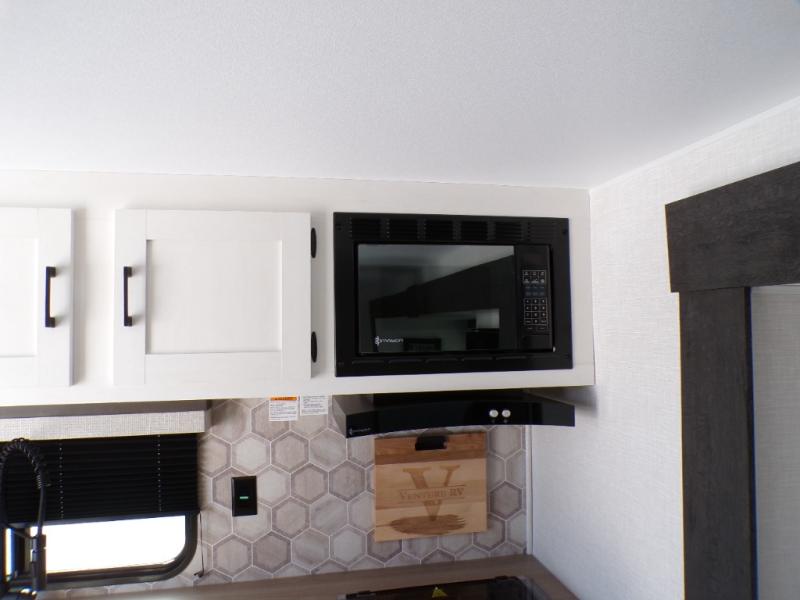 With any Sienna travel trailer by Venture RV, you will enjoy a lightweight unit, convenient amenities, and a durable construction that includes a BAL NXG-bolted frame. There is also a heated and enclosed one-piece underbelly, residential fiberglass insulation, and a reflective PVC roof membrane within the Weather-Shield Package to help extend your camping season. Outside, the BAL 5.0 power stabilizer jacks and power tongue jack will have you set up in no-time, and the Venture RV bottle opener/dog tie down will make it easy to bring your furry friends along. Head inside to enjoy the modern farmhouse design, along with Beauflor throughout with no carpet, custom backsplash, large underbed storage, and a bath skylight to name a few comforts!