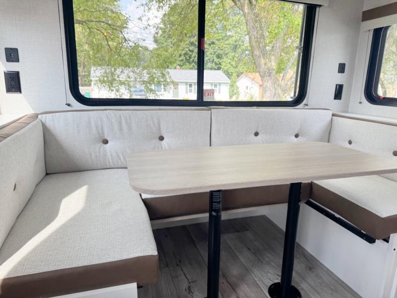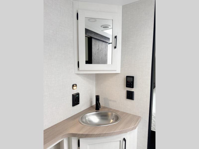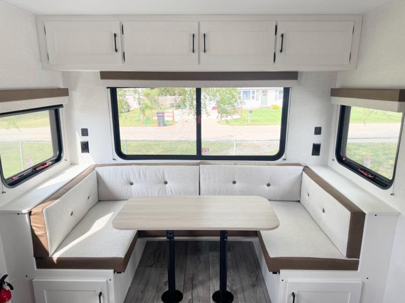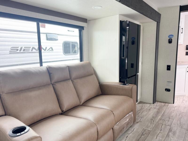 With any Sienna travel trailer by Venture RV, you will enjoy a lightweight unit, convenient amenities, and a durable construction that includes a BAL NXG-bolted frame. There is also a heated and enclosed one-piece underbelly, residential fiberglass insulation, and a reflective PVC roof membrane within the Weather-Shield Package to help extend your camping season. Outside, the BAL 5.0 power stabilizer jacks and power tongue jack will have you set up in no-time, and the Venture RV bottle opener/dog tie down will make it easy to bring your furry friends along. Head inside to enjoy the modern farmhouse design, along with Beauflor throughout with no carpet, custom backsplash, large underbed storage, and a bath skylight to name a few comforts!