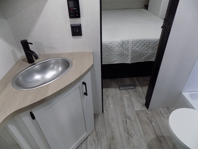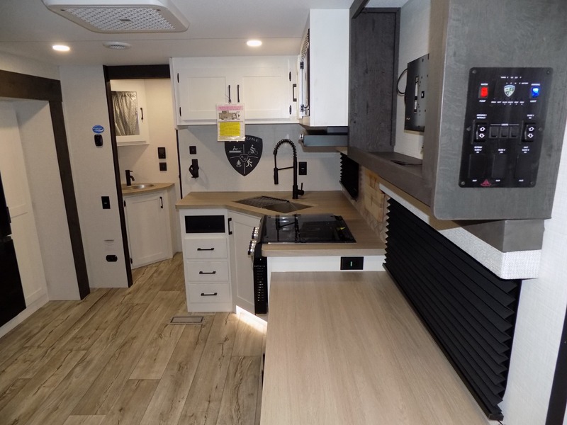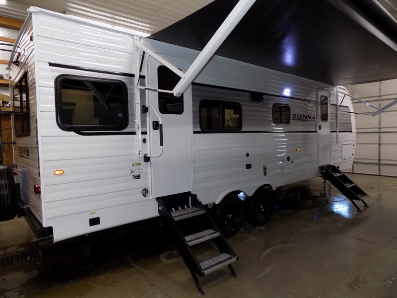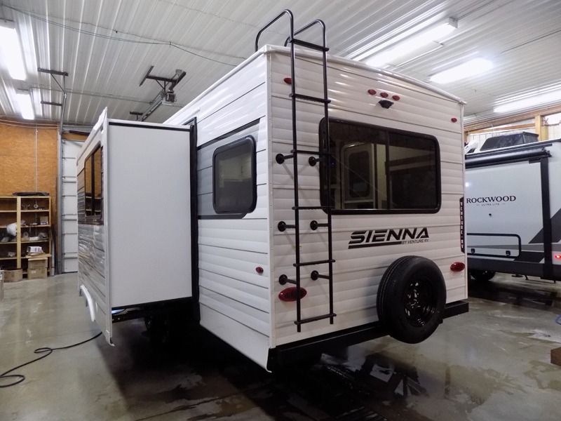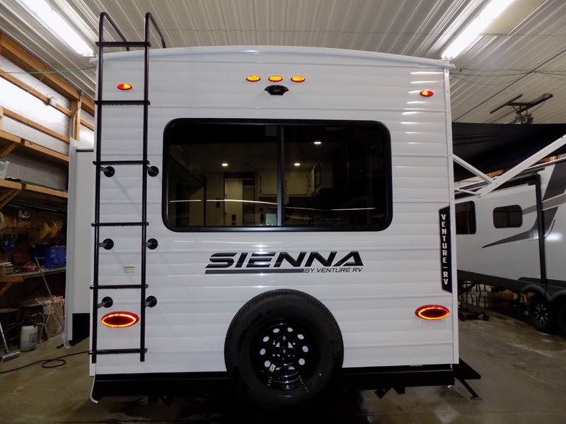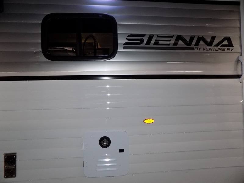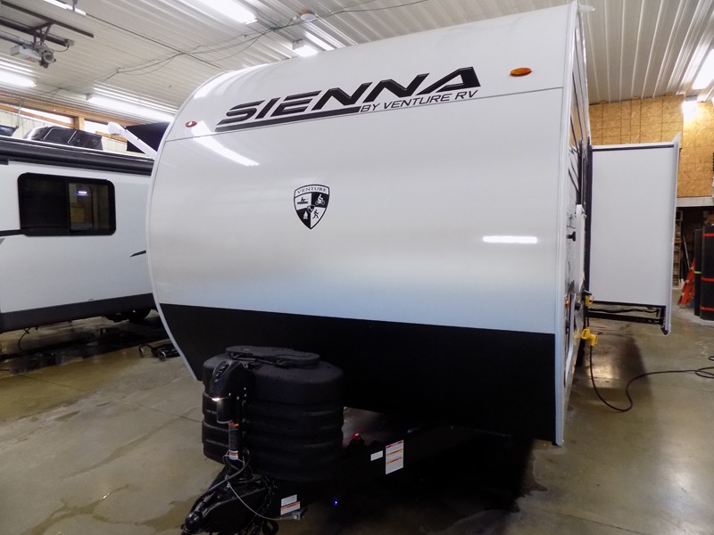 With any Sienna travel trailer by Venture RV, you will enjoy a lightweight unit, convenient amenities, and a durable construction that includes a BAL NXG-bolted frame. There is also a heated and enclosed one-piece underbelly, residential fiberglass insulation, and a reflective PVC roof membrane within the Weather-Shield Package to help extend your camping season. Outside, the BAL 5.0 power stabilizer jacks and power tongue jack will have you set up in no-time, and the Venture RV bottle opener/dog tie down will make it easy to bring your furry friends along. Head inside to enjoy the modern farmhouse design, along with Beauflor throughout with no carpet, custom backsplash, large underbed storage, and a bath skylight to name a few comforts!