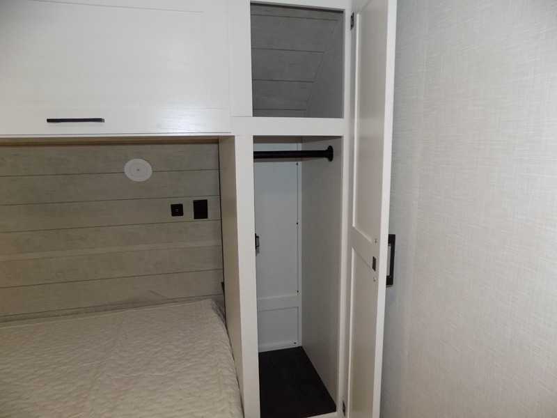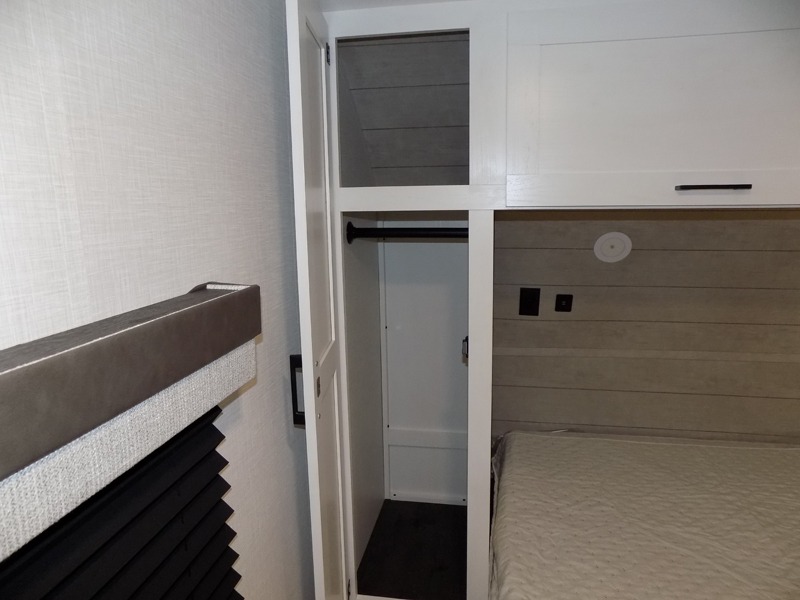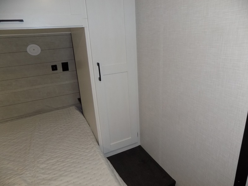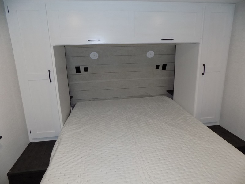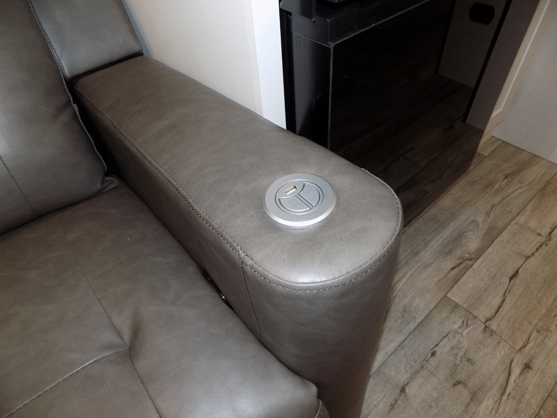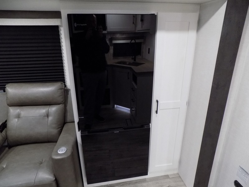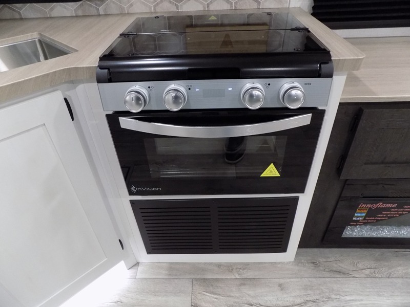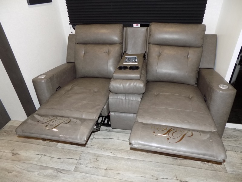 This fantastic trailer is packed with features that will make your travels comfortable, convenient, and unforgettable. In its luxurious interior you will find the U-shaped dinette perfect for meals or socializing, while the 70” sofa provides ample space for relaxation. The fireplace adds a cozy touch, creating a warm and inviting atmosphere. For the entertainment and leisure, the 40” TV is perfect for family movie nights or enjoying your favorite shows on the go. The entertainment system is designed to keep you entertained and relaxed. Moving to the kitchen area, the three-burner cooktop and pantry provide everything you need to prepare delicious meals on the go and the 12V refrigerator keeps your food and drinks fresh, ensuring you have everything you need for a comfortable trip. Convenience is found in the amazing walk-through bath offering easy access while the front bedroom is a serene retreat featuring a spacious queen bed, overhead cabinets, and wardrobes. Additional features like the two entry/exit doors provide added flexibility and ease of use, while the exterior awning furnish shade and protection from the elements.