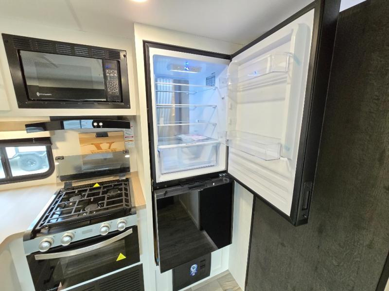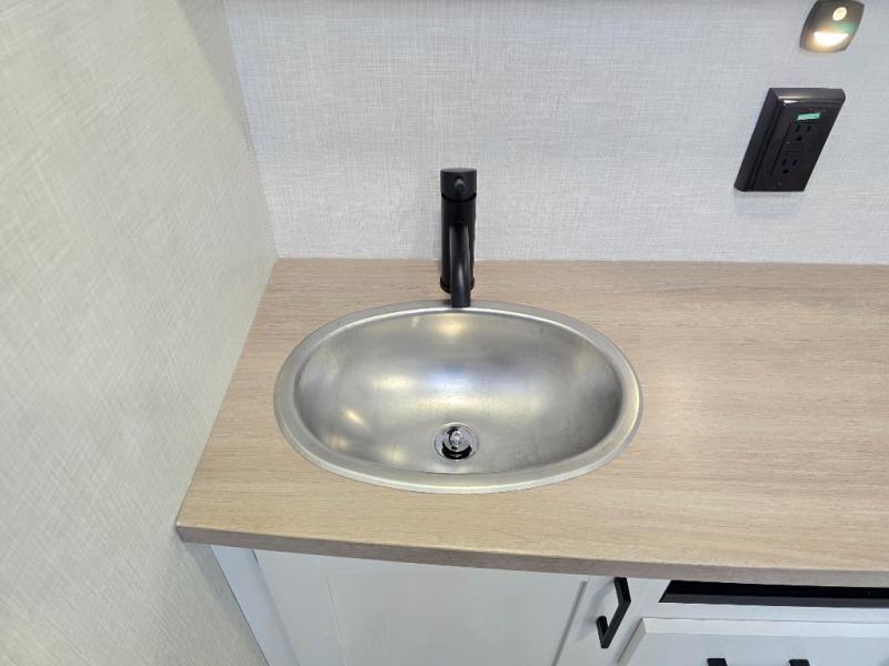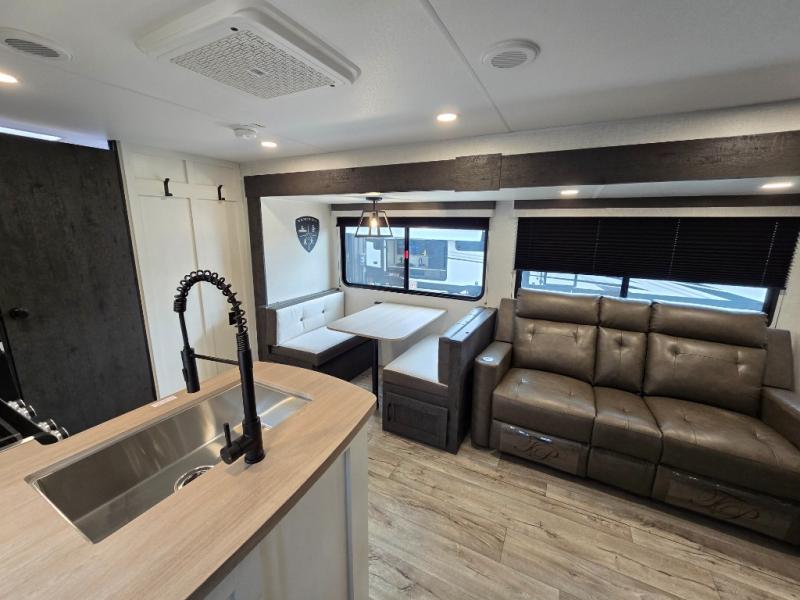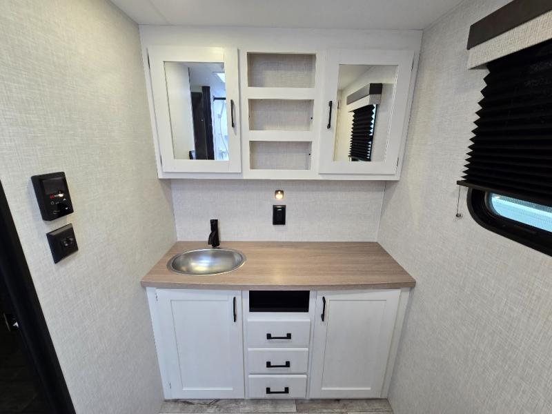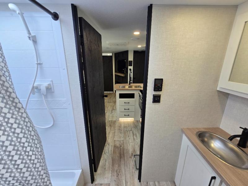 With any Sienna travel trailer by Venture RV, you will enjoy a lightweight unit, convenient amenities, and a durable construction that includes a BAL NXG-bolted frame. There is also a heated and enclosed one-piece underbelly, residential fiberglass insulation, and a reflective PVC roof membrane within the Weather-Shield Package to help extend your camping season. Outside, the BAL 5.0 power stabilizer jacks and power tongue jack will have you set up in no-time, and the Venture RV bottle opener/dog tie down will make it easy to bring your furry friends along. Head inside to enjoy the modern farmhouse design, along with Beauflor throughout with no carpet, custom backsplash, large underbed storage, and a bath skylight to name a few comforts!