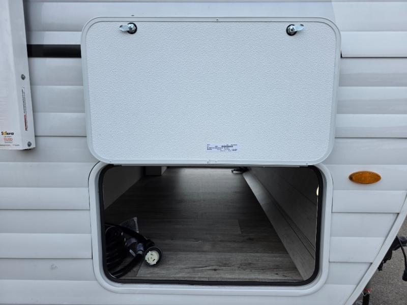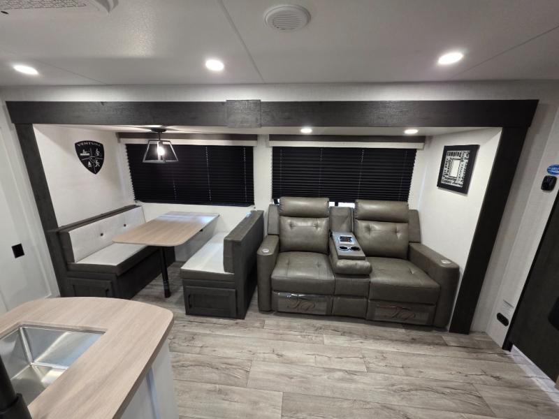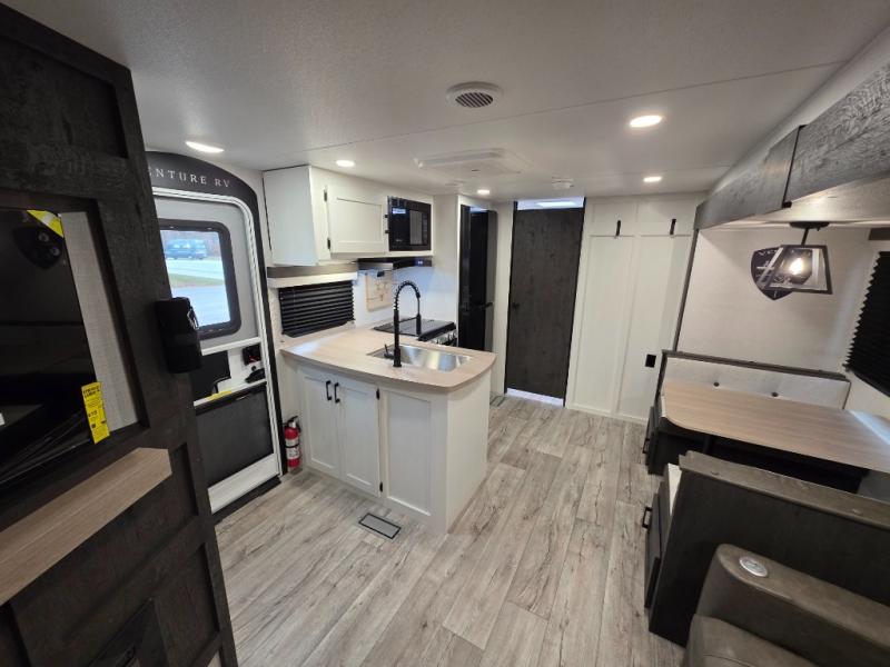 With any Sienna travel trailer by Venture RV, you will enjoy a lightweight unit, convenient amenities, and a durable construction that includes a BAL NXG-bolted frame. There is also a heated and enclosed one-piece underbelly, residential fiberglass insulation, and a reflective PVC roof membrane within the Weather-Shield Package to help extend your camping season. Outside, the BAL 5.0 power stabilizer jacks and power tongue jack will have you set up in no-time, and the Venture RV bottle opener/dog tie down will make it easy to bring your furry friends along. Head inside to enjoy the modern farmhouse design, along with Beauflor throughout with no carpet, custom backsplash, large underbed storage, and a bath skylight to name a few comforts!