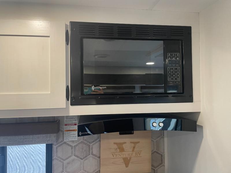 With any Sienna travel trailer by Venture RV, you will enjoy a lightweight unit, convenient amenities, and a durable construction that includes a BAL NXG-bolted frame. There is also a heated and enclosed one-piece underbelly, residential fiberglass insulation, and a reflective PVC roof membrane within the Weather-Shield Package to help extend your camping season. Outside, the BAL 5.0 power stabilizer jacks and power tongue jack will have you set up in no-time, and the Venture RV bottle opener/dog tie down will make it easy to bring your furry friends along. Head inside to enjoy the modern farmhouse design, along with Beauflor throughout with no carpet, custom backsplash, large underbed storage, and a bath skylight to name a few comforts!