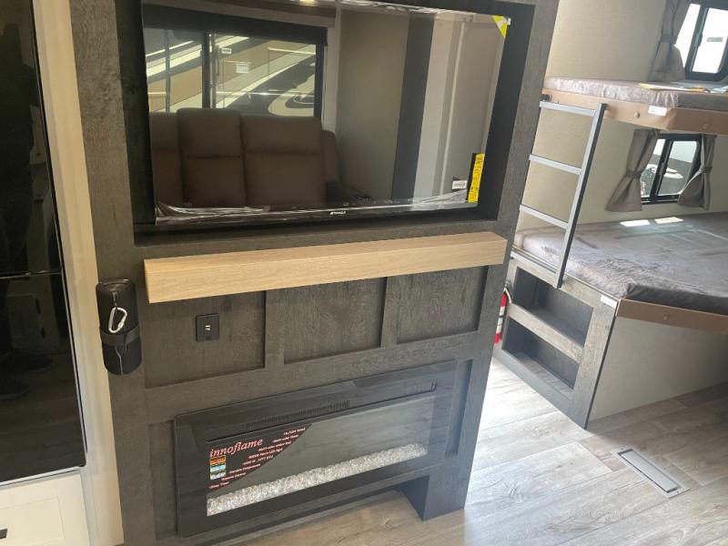 You'll love every minute spent in this bunkhouse travel trailer. The front private bedroom includes a Sleep Tight queen bed, dual wardrobes, and TV prep if you want the option to watch movies in bed. Your crew can relax on the sofa or Sit N' Slide table within the large slide out and watch a movie with the Smart TV. Since there is an outdoor griddle and refrigerator plus a 20' power awning, you may just find yourselves outside most days! When it's time to call it a night, there are double-size bunks in the rear corner for your guests, and the full bath is right next to the bunks for easy nighttime use. This unit also includes an entryway pantry with washer and dryer prep, making it easier to go full-time if you choose!