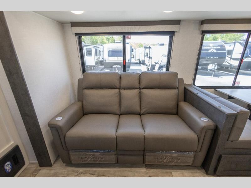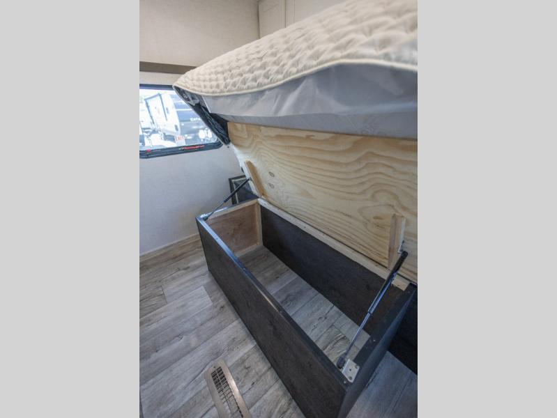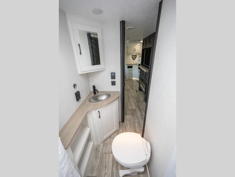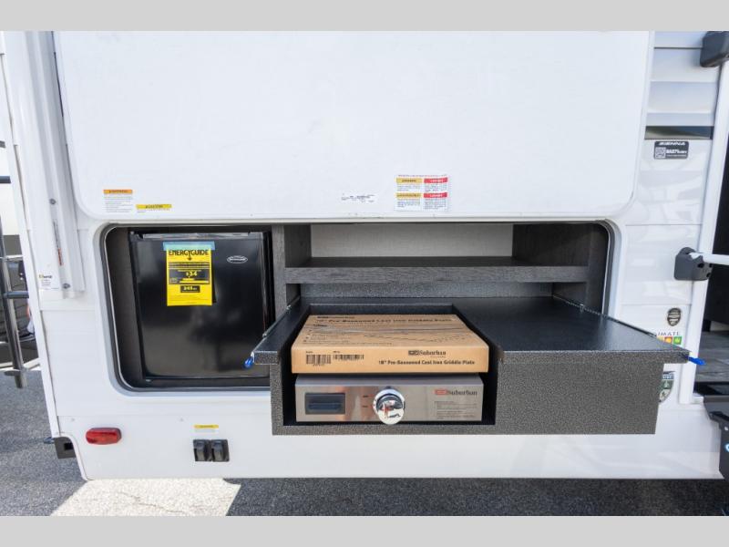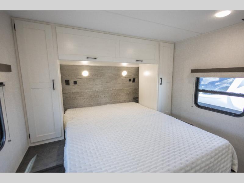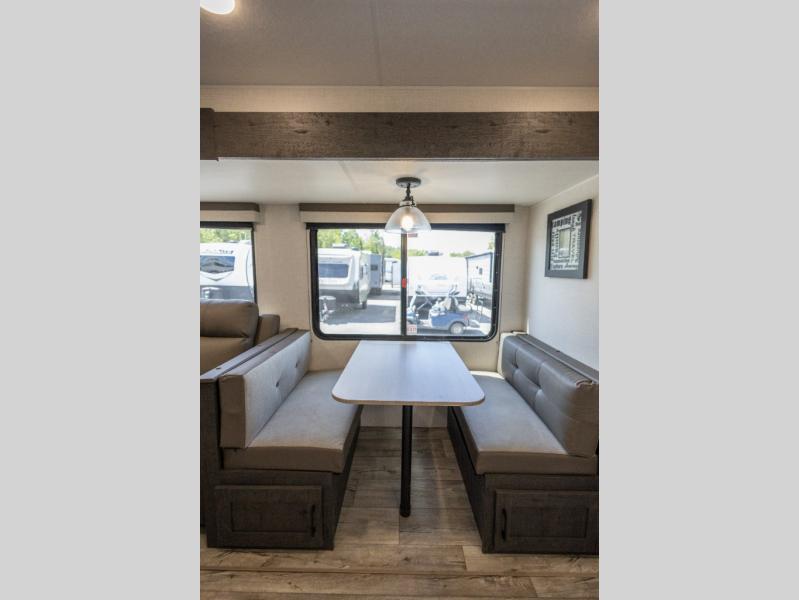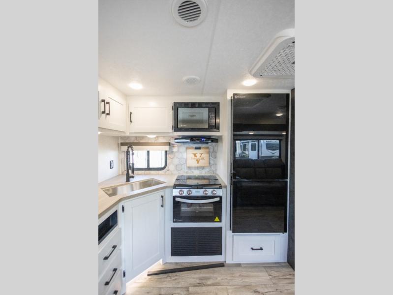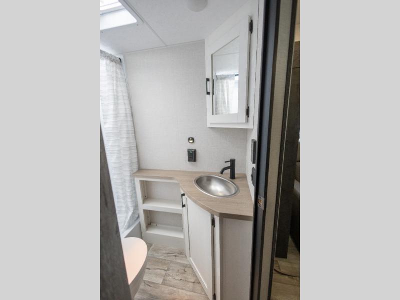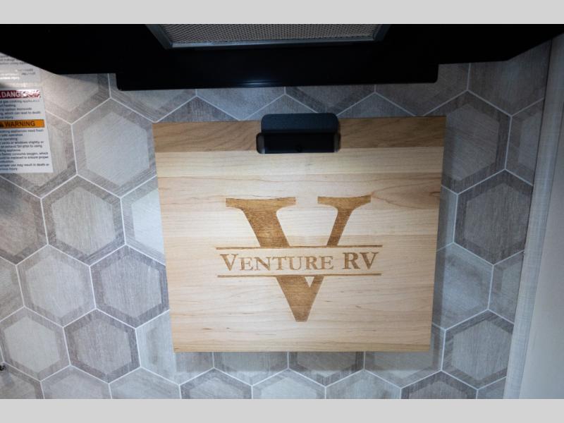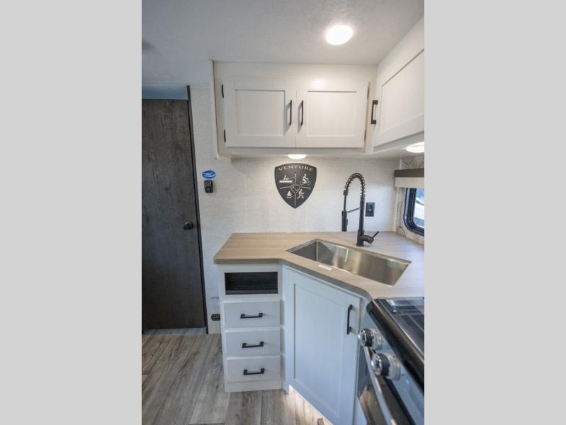 With any Sienna travel trailer by Venture RV, you will enjoy a lightweight unit, convenient amenities, and a durable construction that includes a BAL NXG-bolted frame. There is also a heated and enclosed one-piece underbelly, residential fiberglass insulation, and a reflective PVC roof membrane within the Weather-Shield Package to help extend your camping season. Outside, the BAL 5.0 power stabilizer jacks and power tongue jack will have you set up in no-time, and the Venture RV bottle opener/dog tie down will make it easy to bring your furry friends along. Head inside to enjoy the modern farmhouse design, along with Beauflor throughout with no carpet, custom backsplash, large underbed storage, and a bath skylight to name a few comforts!