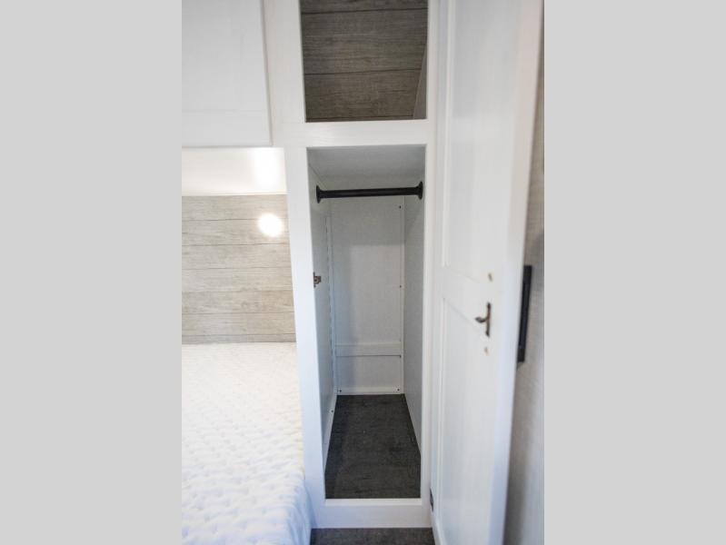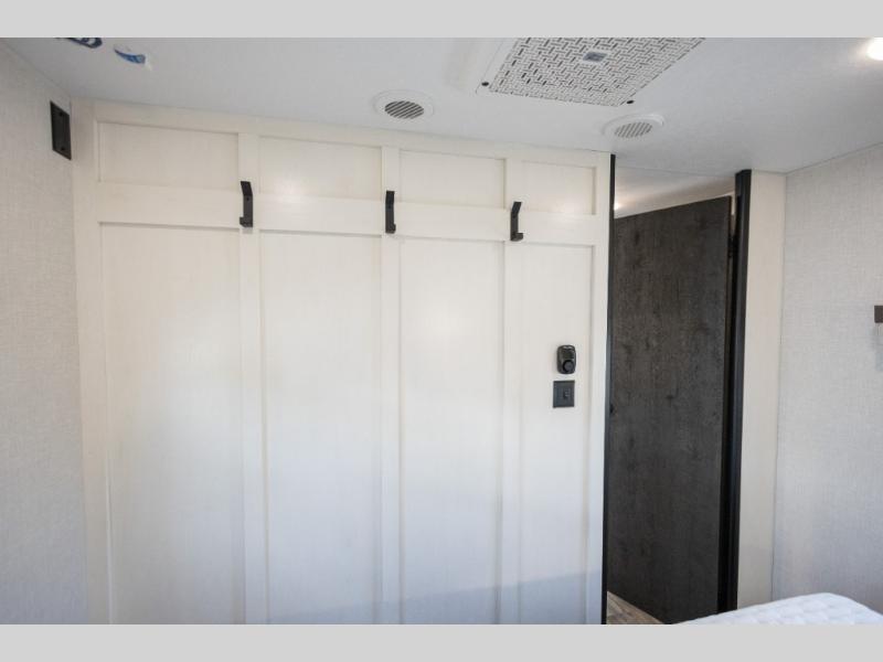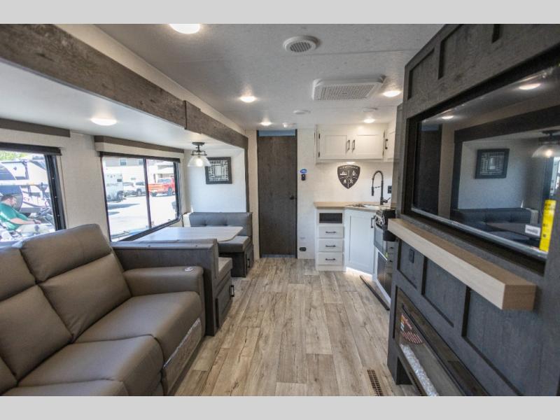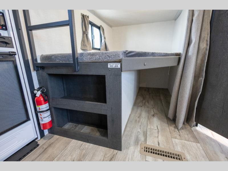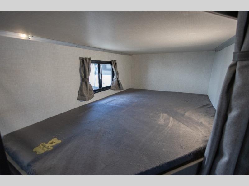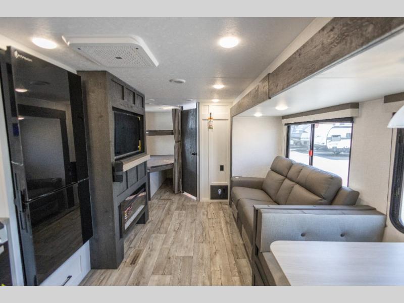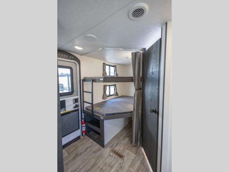 You'll love every minute spent in this bunkhouse travel trailer. The front private bedroom includes a Sleep Tight queen bed, dual wardrobes, and TV prep if you want the option to watch movies in bed. Your crew can relax on the sofa or Sit N' Slide table within the large slide out and watch a movie with the Smart TV. Since there is an outdoor griddle and refrigerator plus a 20' power awning, you may just find yourselves outside most days! When it's time to call it a night, there are double-size bunks in the rear corner for your guests, and the full bath is right next to the bunks for easy nighttime use. This unit also includes an entryway pantry with washer and dryer prep, making it easier to go full-time if you choose!