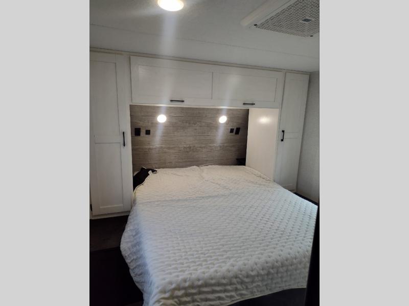 With any Sienna travel trailer by Venture RV, you will enjoy a lightweight unit, convenient amenities, and a durable construction that includes a BAL NXG-bolted frame. There is also a heated and enclosed one-piece underbelly, residential fiberglass insulation, and a reflective PVC roof membrane within the Weather-Shield Package to help extend your camping season. Outside, the BAL 5.0 power stabilizer jacks and power tongue jack will have you set up in no-time, and the Venture RV bottle opener/dog tie down will make it easy to bring your furry friends along. Head inside to enjoy the modern farmhouse design, along with Beauflor throughout with no carpet, custom backsplash, large underbed storage, and a bath skylight to name a few comforts!