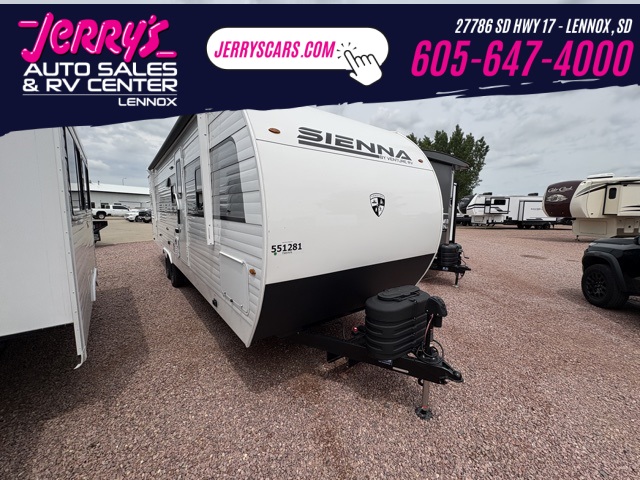 With any Sienna travel trailer by Venture RV, you will enjoy a lightweight unit, convenient amenities, and a durable construction that includes a BAL NXG-bolted frame. There is also a heated and enclosed one-piece underbelly, residential fiberglass insulation, and a reflective PVC roof membrane within the Weather-Shield Package to help extend your camping season. Outside, the BAL 5.0 power stabilizer jacks and power tongue jack will have you set up in no-time, and the Venture RV bottle opener/dog tie down will make it easy to bring your furry friends along. Head inside to enjoy the modern farmhouse design, along with Beauflor throughout with no carpet, custom backsplash, large underbed storage, and a bath skylight to name a few comforts!