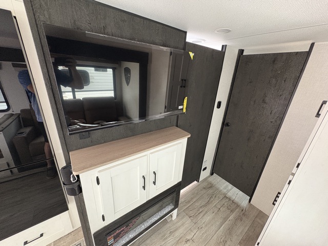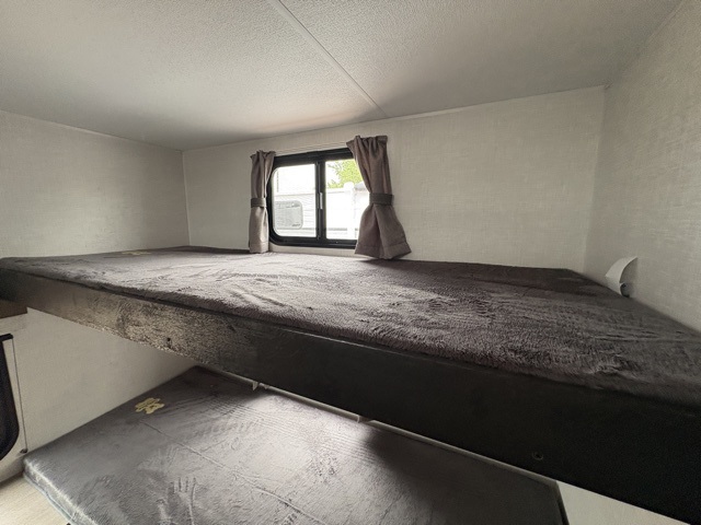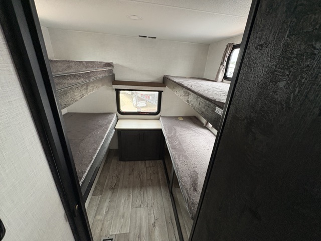 You'll love every minute spent in this spacious travel trailer with a rear private bunkhouse. There are two sets of bunk beds here, and the bottom bunks convert into a king-size bed, giving you options how you want to set up this space. The front private bedroom includes a Sleep Tight queen bed, dual wardrobes, and sliding doors that will help save on space. Your crew can relax on the 70" sofa or Sit N' Slide table within the large slide out and watch a movie with the Smart TV. Since there is an outdoor griddle and refrigerator plus a 20' power awning, you may just find yourselves outside most days!