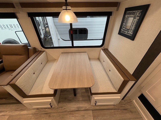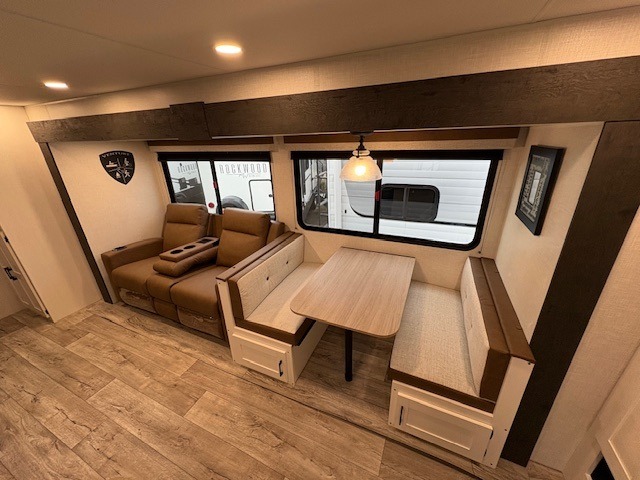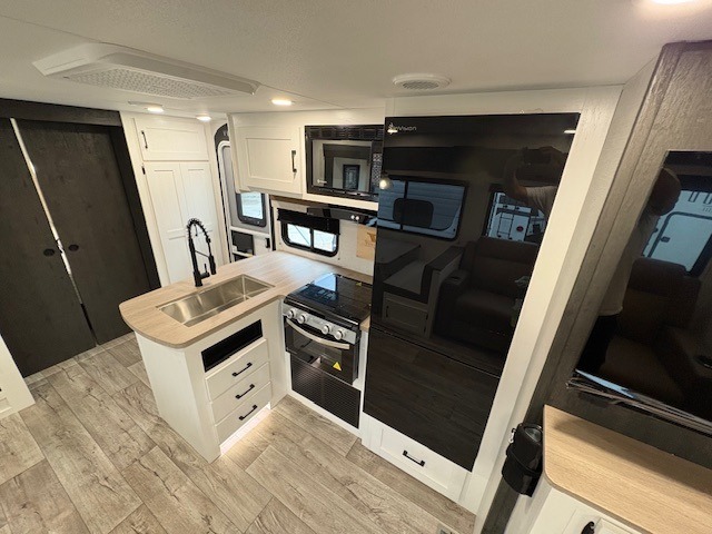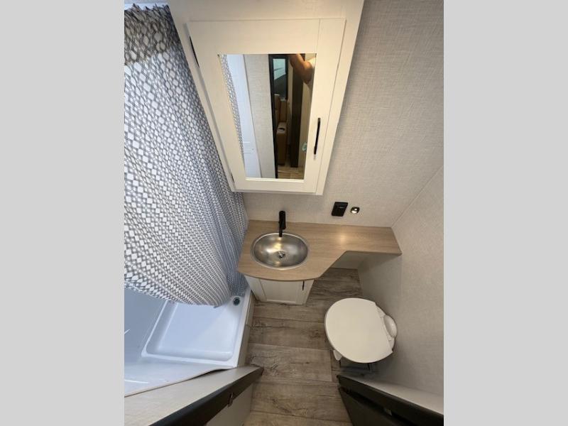 With any Sienna travel trailer by Venture RV, you will enjoy a lightweight unit, convenient amenities, and a durable construction that includes a BAL NXG-bolted frame. There is also a heated and enclosed one-piece underbelly, residential fiberglass insulation, and a reflective PVC roof membrane within the Weather-Shield Package to help extend your camping season. Outside, the BAL 5.0 power stabilizer jacks and power tongue jack will have you set up in no-time, and the Venture RV bottle opener/dog tie down will make it easy to bring your furry friends along. Head inside to enjoy the modern farmhouse design, along with Beauflor throughout with no carpet, custom backsplash, large underbed storage, and a bath skylight to name a few comforts!