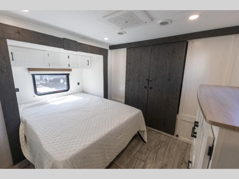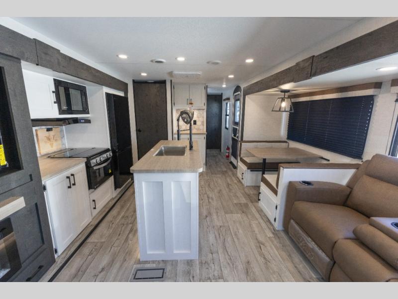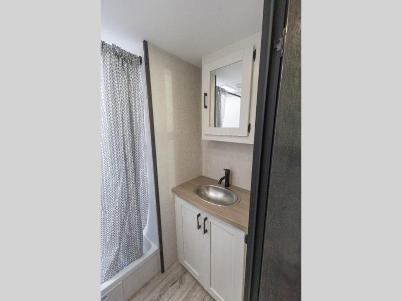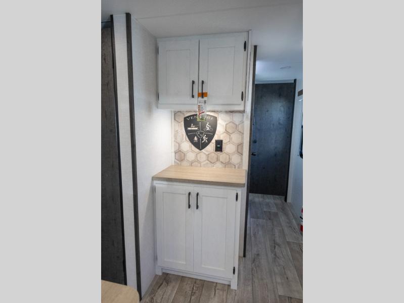 With any Sienna travel trailer by Venture RV, you will enjoy a lightweight unit, convenient amenities, and a durable construction that includes a BAL NXG-bolted frame. There is also a heated and enclosed one-piece underbelly, residential fiberglass insulation, and a reflective PVC roof membrane within the Weather-Shield Package to help extend your camping season. Outside, the BAL 5.0 power stabilizer jacks and power tongue jack will have you set up in no-time, and the Venture RV bottle opener/dog tie down will make it easy to bring your furry friends along. Head inside to enjoy the modern farmhouse design, along with Beauflor throughout with no carpet, custom backsplash, large underbed storage, and a bath skylight to name a few comforts!