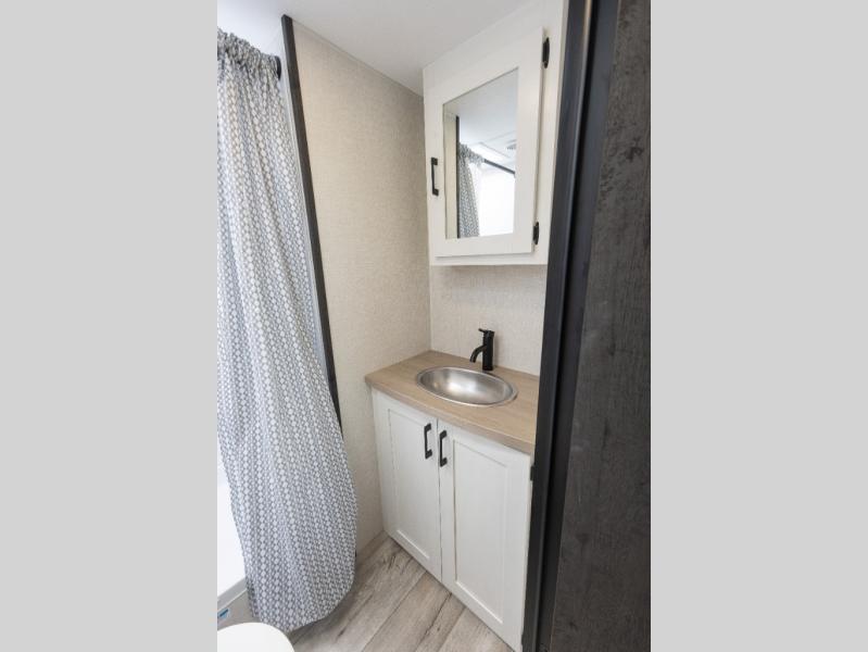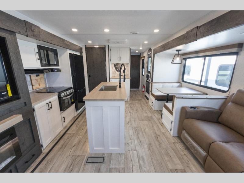 With any Sienna travel trailer by Venture RV, you will enjoy a lightweight unit, convenient amenities, and a durable construction that includes a BAL NXG-bolted frame. There is also a heated and enclosed one-piece underbelly, residential fiberglass insulation, and a reflective PVC roof membrane within the Weather-Shield Package to help extend your camping season. Outside, the BAL 5.0 power stabilizer jacks and power tongue jack will have you set up in no-time, and the Venture RV bottle opener/dog tie down will make it easy to bring your furry friends along. Head inside to enjoy the modern farmhouse design, along with Beauflor throughout with no carpet, custom backsplash, large underbed storage, and a bath skylight to name a few comforts!