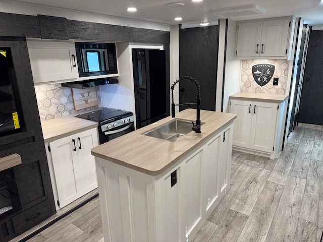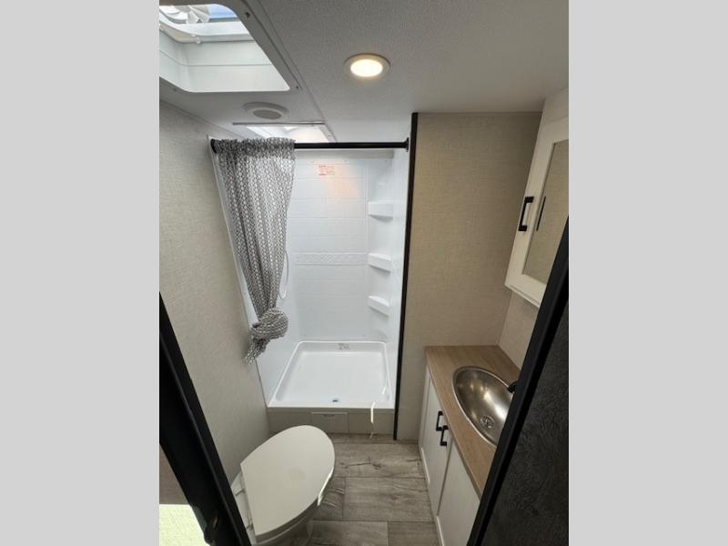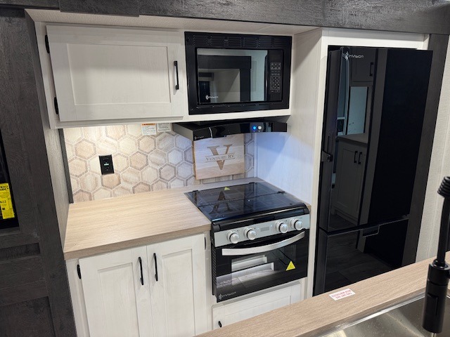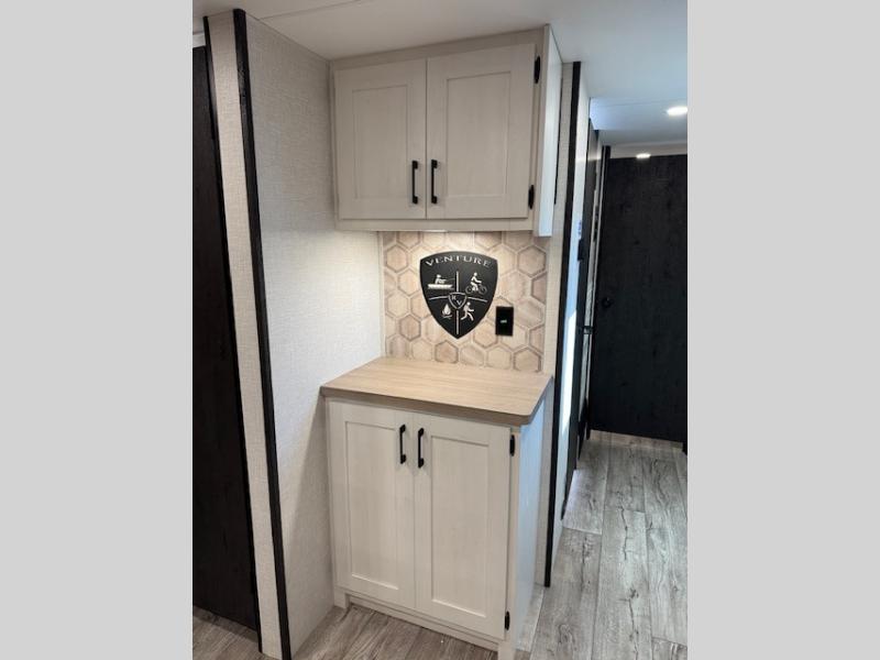 With any Sienna travel trailer by Venture RV, you will enjoy a lightweight unit, convenient amenities, and a durable construction that includes a BAL NXG-bolted frame. There is also a heated and enclosed one-piece underbelly, residential fiberglass insulation, and a reflective PVC roof membrane within the Weather-Shield Package to help extend your camping season. Outside, the BAL 5.0 power stabilizer jacks and power tongue jack will have you set up in no-time, and the Venture RV bottle opener/dog tie down will make it easy to bring your furry friends along. Head inside to enjoy the modern farmhouse design, along with Beauflor throughout with no carpet, custom backsplash, large underbed storage, and a bath skylight to name a few comforts!