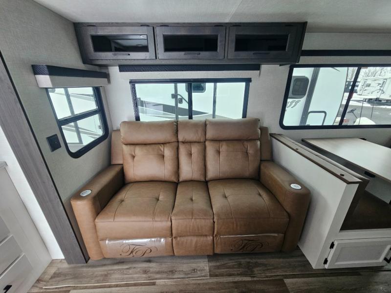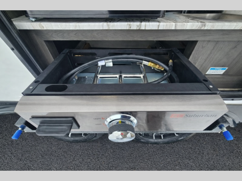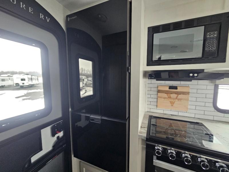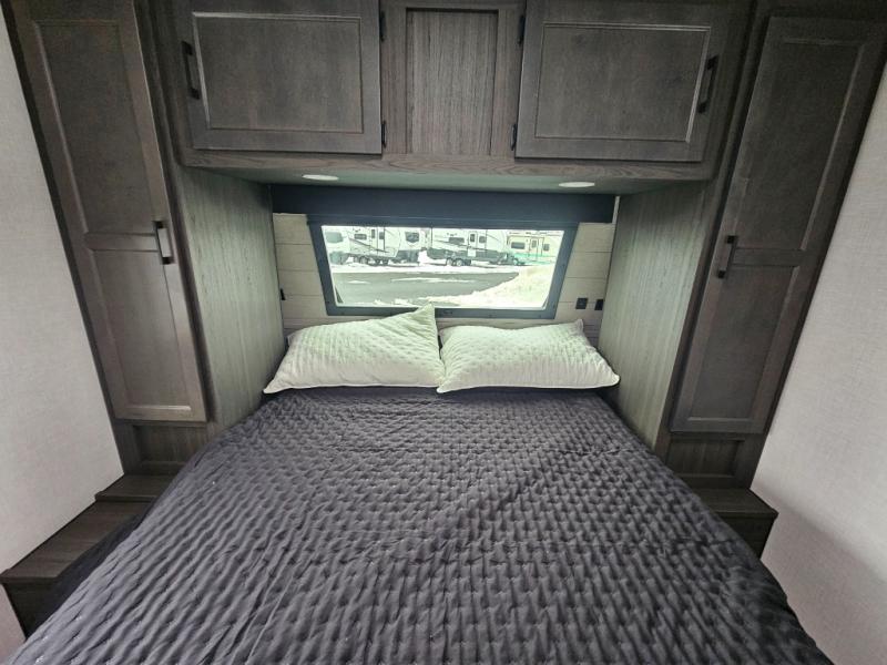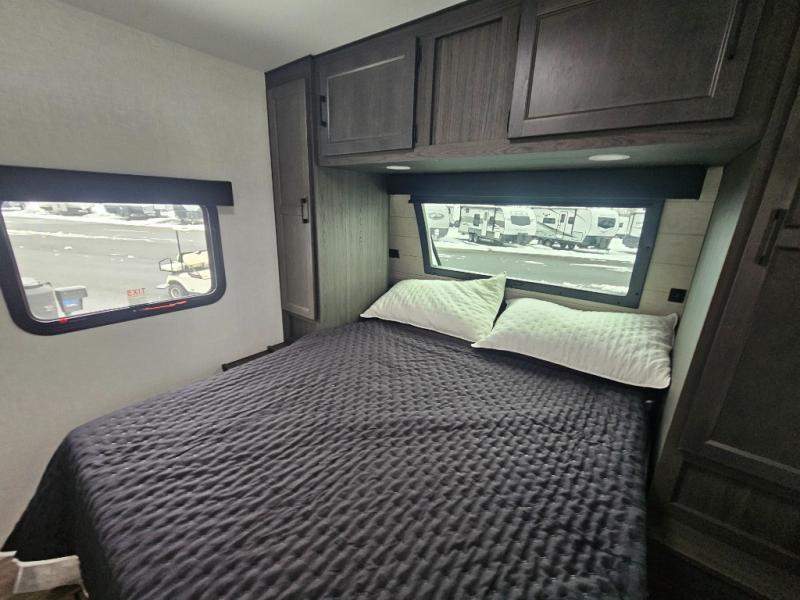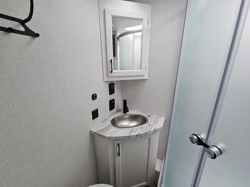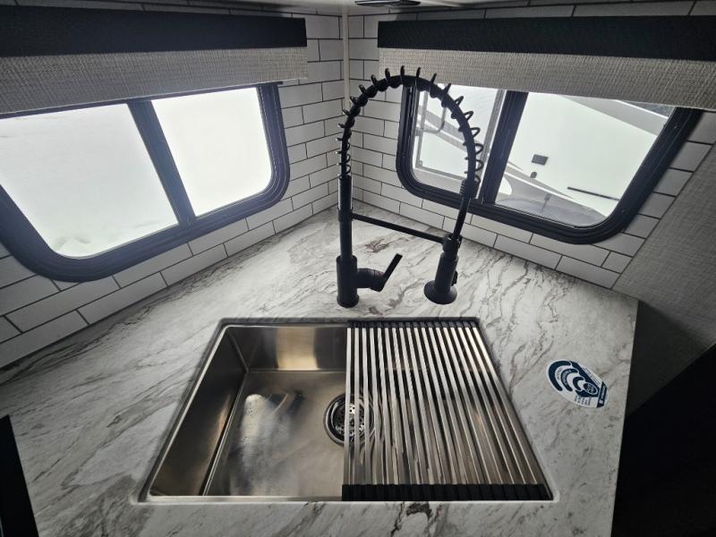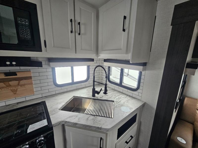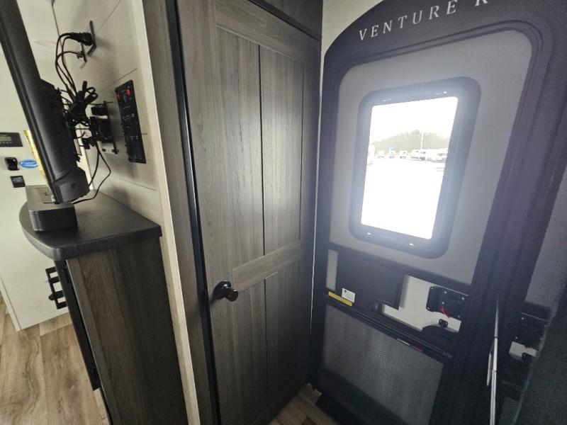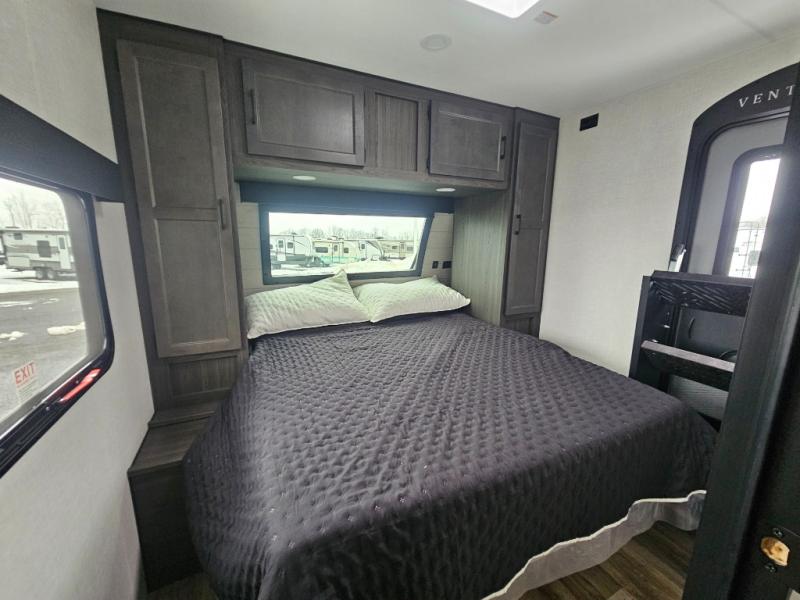 Every Venture RV SportTrek lightweight travel trailer is constructed to offer peace of mind and the comforts of home! Their purposeful residential kitchens are packed with handy features like a Furrion oven and three burner cooktop, a large stainless steel sink with a cover and dish drying rack, plus a 12V refrigerator. You will find plenty of storage throughout, including Safe-Tek hidden storage with a charging center and StorMore nightstands on either side of the bed behind the full-length closets. And the magnetic slam-latch baggage doors and spacious pass-through storage area will hold your outdoor gear in place. They even come with a hot and cold exterior shower and SporTrek's Weather Shield which includes a forced air heated and enclosed underbelly, radiant foil insulation wrapped tanks, and more features that will let you extend your camping season. You will also love the new residential upgraded furniture, Serta memory foam mattress, barn style passage doors, and many more comforts!