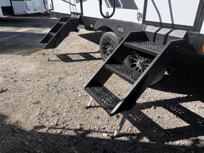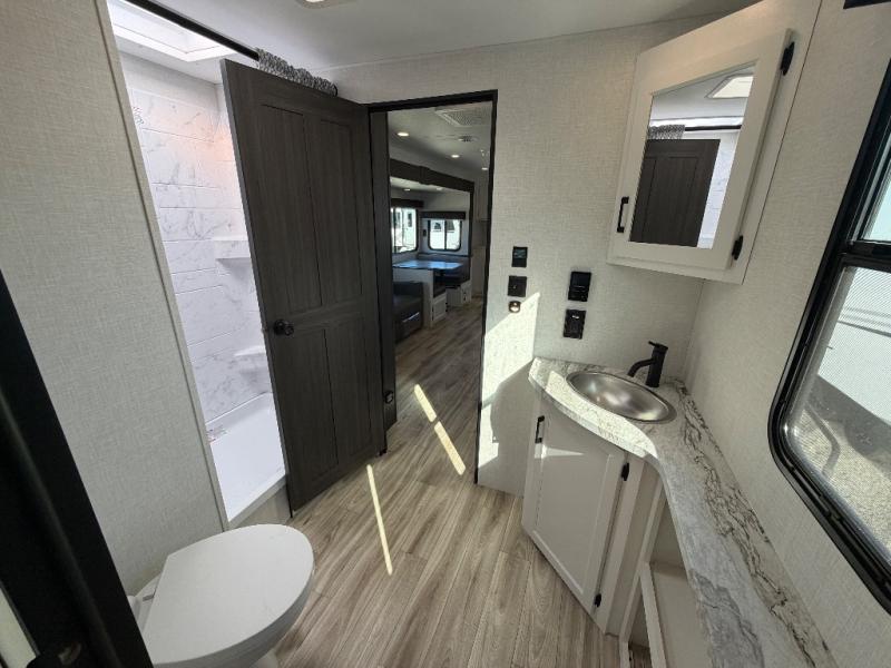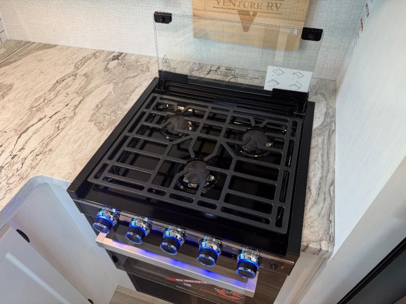Every Venture RV SportTrek lightweight travel trailer is constructed to offer peace of mind and the comforts of home! Their purposeful residential kitchens are packed with handy features like a Furrion oven and three burner cooktop, a large stainless steel sink with a cover and dish drying rack, plus a 12V refrigerator. You will find plenty of storage throughout, including Safe-Tek hidden storage with a charging center and StorMore nightstands on either side of the bed behind the full-length closets. And the magnetic slam-latch baggage doors and spacious pass-through storage area will hold your outdoor gear in place. They even come with a hot and cold exterior shower and SporTrek's Weather Shield which includes a forced air heated and enclosed underbelly, radiant foil insulation wrapped tanks, and more features that will let you extend your camping season. You will also love the new residential upgraded furniture, Serta memory foam mattress, barn style passage doors, and many more comforts!