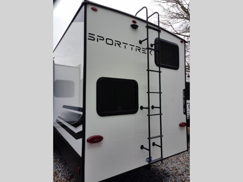 Experience travel redefined with the SportTrek Fifth Wheel, where modern design meets everyday comfort. The painted fiberglass front cap with integrated LED lighting gives this RV a bold, aerodynamic look while enhancing visibility on the road. Inside, unwind in the living area with a 5,000 BTU electric fireplace, creating the perfect ambiance after a day of adventure. The JBL sound system with a Bluetooth Flip speaker delivers premium audio inside and out, making entertainment effortless wherever you roam. And with a tankless water heater, you’ll enjoy endless hot water for showers and cleaning, ensuring that every journey feels just like home.