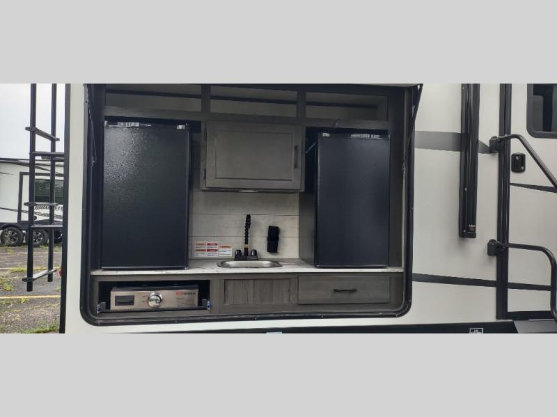 And when the weather’s right, head outdoors to the Campfire Café, where two outdoor 3 cu. ft. refrigerators, a griddle, sink, and extra storage let you cook like a pro under the stars—plus keep the kids' drinks and snacks ready to go.