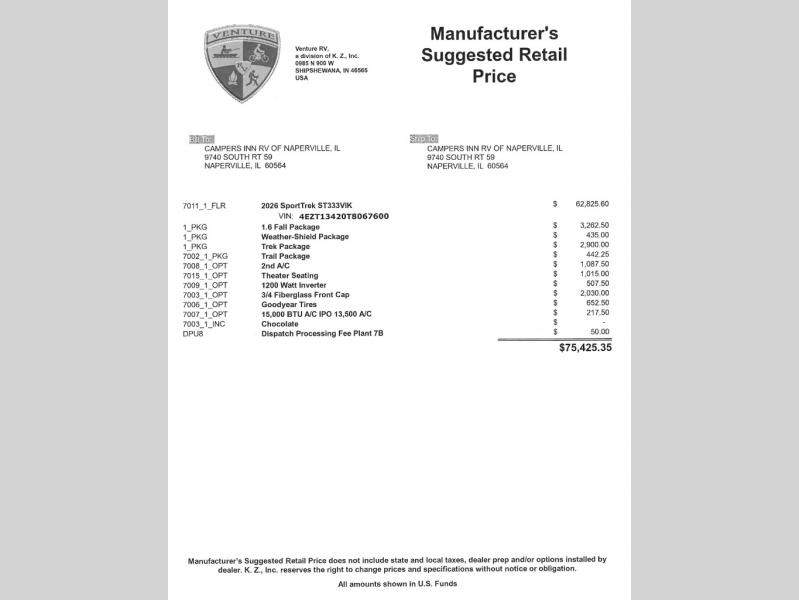 New 2026 Venture RV SportTrek 333VIK Travel Trailer