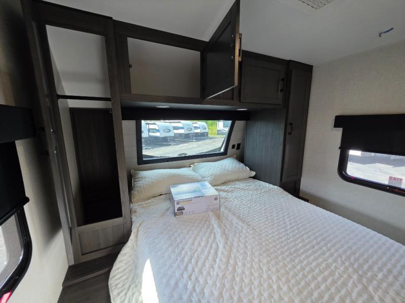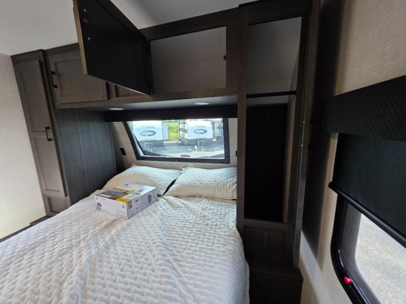 After a long day outdoors, retreat to your private suite with a 60" x 80" Sleep Tight queen bed, dual wardrobes, overhead storage, and TV prep. With sliding doors for privacy, this bedroom feels like your own personal escape.