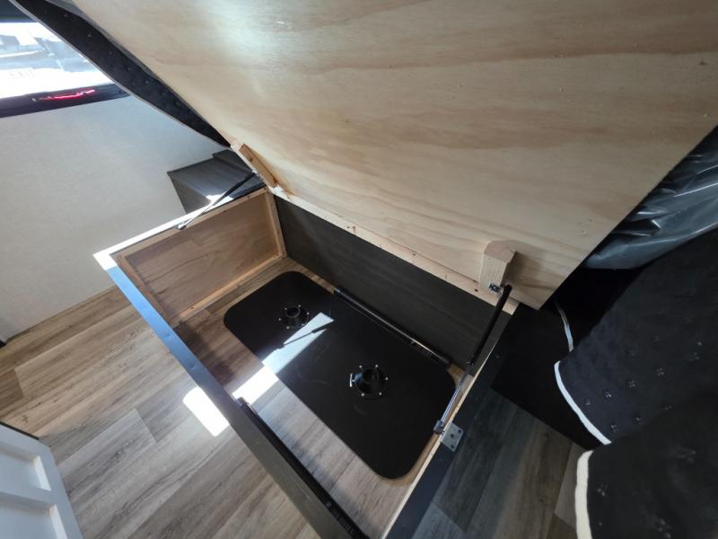 Bring the whole crew! The spacious bunkroom features two large bunks (32" x 70" and 28" x 70"), a 72" sofa, flip-up bunks for extra floor space, a folding table, and its own storage and linen area. It's the perfect retreat for kids, guests, or even a mobile office setup thanks to the included flip desk.