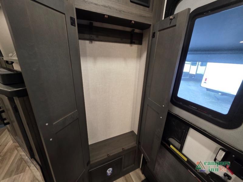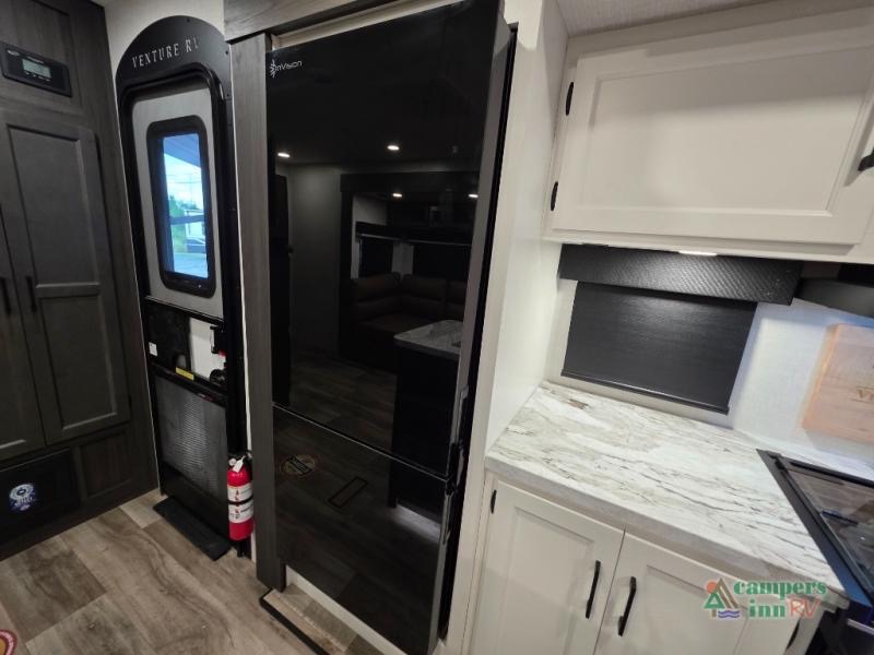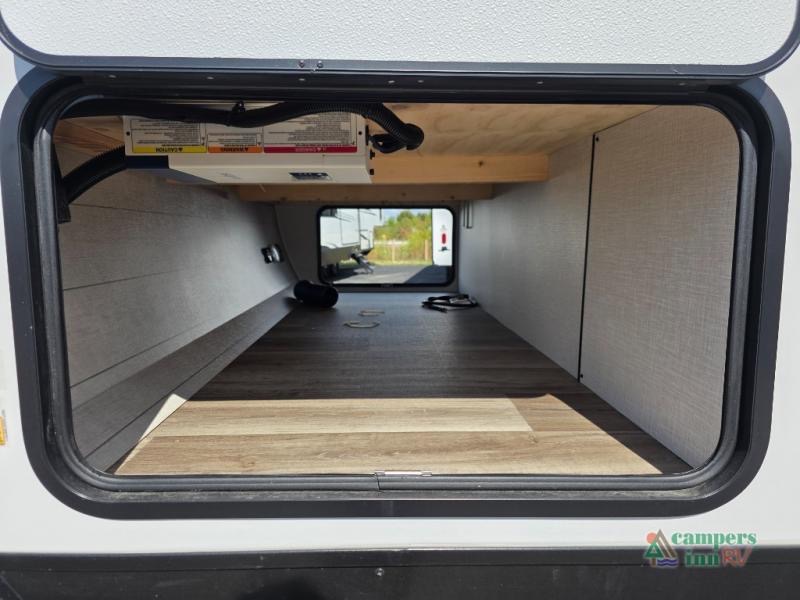 Every Venture RV SportTrek lightweight travel trailer is constructed to offer peace of mind and the comforts of home! Their purposeful residential kitchens are packed with handy features like a Furrion oven and three burner cooktop, a large stainless steel sink with a cover and dish drying rack, plus a 12V refrigerator. You will find plenty of storage throughout, including Safe-Tek hidden storage with a charging center and StorMore nightstands on either side of the bed behind the full-length closets. And the magnetic slam-latch baggage doors and spacious pass-through storage area will hold your outdoor gear in place. They even come with a hot and cold exterior shower and SporTrek's Weather Shield which includes a forced air heated and enclosed underbelly, high output A/C ducting, and more features that will let you extend your camping season. You will also love the new residential upgraded furniture, Serta memory foam mattress, barn style passage doors, and many more comforts!