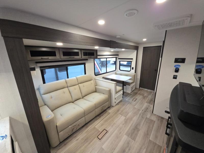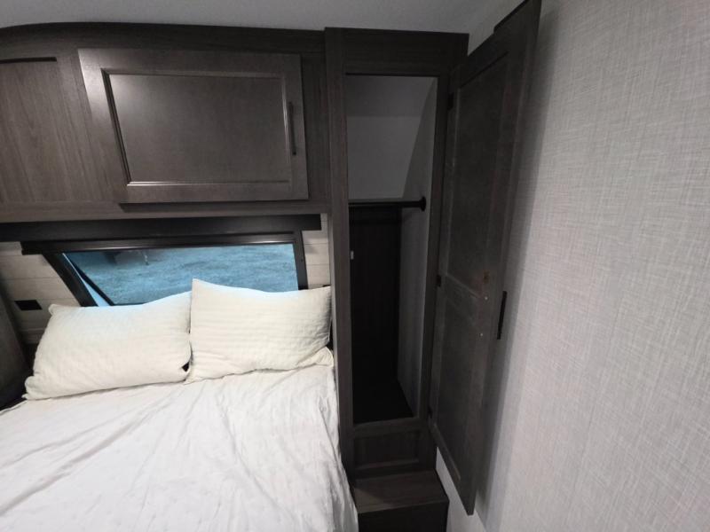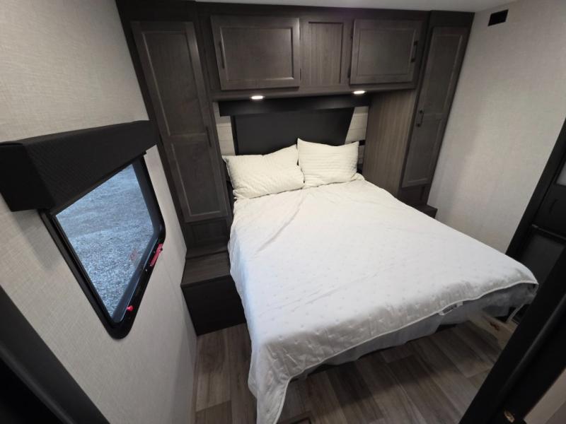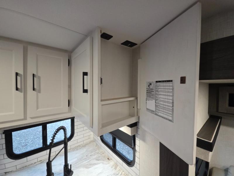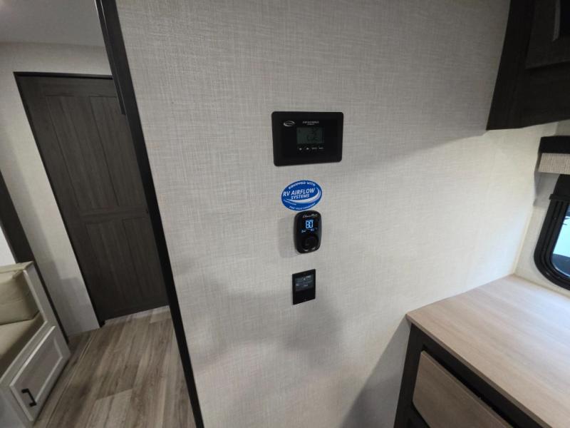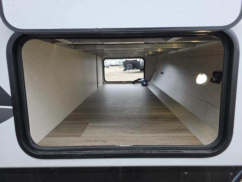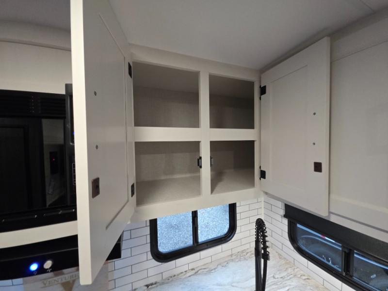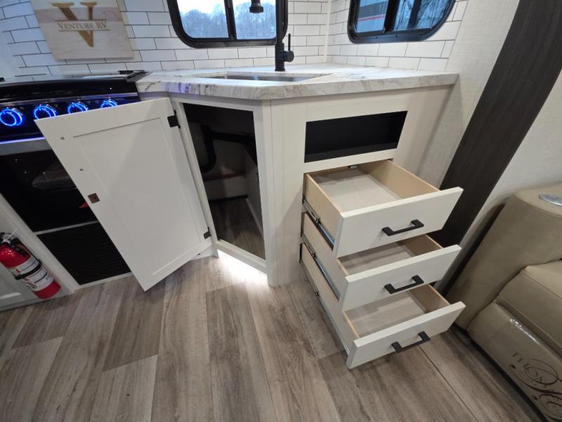 Every Venture RV SportTrek lightweight travel trailer is constructed to offer peace of mind and the comforts of home! Their purposeful residential kitchens are packed with handy features like a Furrion oven and three burner cooktop, a large stainless steel sink with a cover and dish drying rack, plus a 12V refrigerator. You will find plenty of storage throughout, including Safe-Tek hidden storage with a charging center and StorMore nightstands on either side of the bed behind the full-length closets. And the magnetic slam-latch baggage doors and spacious pass-through storage area will hold your outdoor gear in place. They even come with a hot and cold exterior shower and SporTrek's Weather Shield which includes a forced air heated and enclosed underbelly, radiant foil insulation wrapped tanks, and more features that will let you extend your camping season. You will also love the new residential upgraded furniture, Serta memory foam mattress, barn style passage doors, and many more comforts!