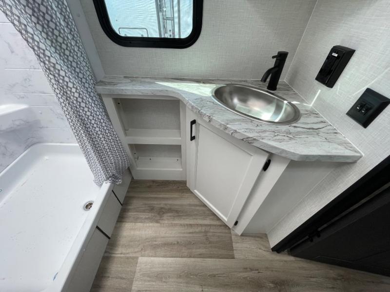 Every Venture RV SportTrek lightweight travel trailer is constructed to offer peace of mind and the comforts of home! Their purposeful residential kitchens are packed with handy features like a Furrion oven and three burner cooktop, a large stainless steel sink with a cover and dish drying rack, plus a 12V refrigerator. You will find plenty of storage throughout, including Safe-Tek hidden storage with a charging center and StorMore nightstands on either side of the bed behind the full-length closets. And the magnetic slam-latch baggage doors and spacious pass-through storage area will hold your outdoor gear in place. They even come with a hot and cold exterior shower and SporTrek's Weather Shield which includes a forced air heated and enclosed underbelly, high output A/C ducting, and more features that will let you extend your camping season. You will also love the new residential upgraded furniture, Serta memory foam mattress, barn style passage doors, and many more comforts!