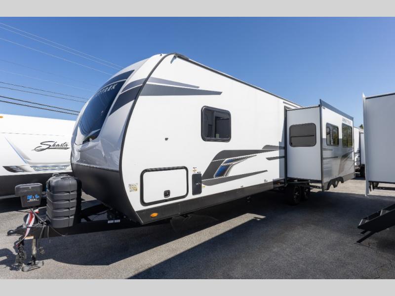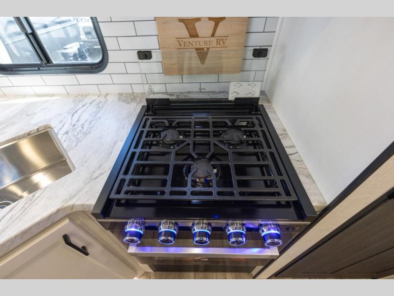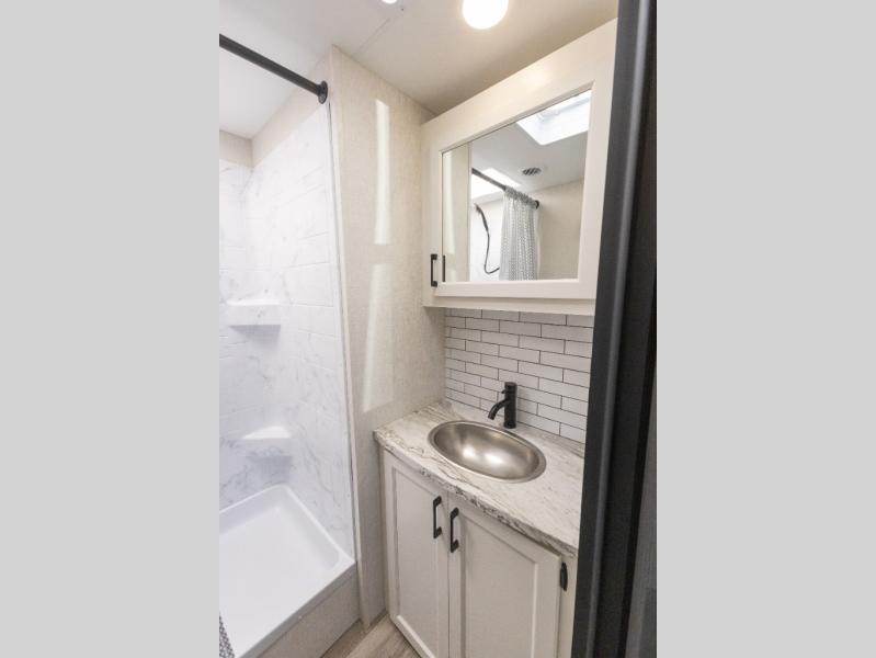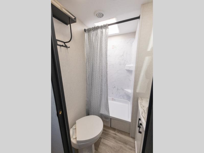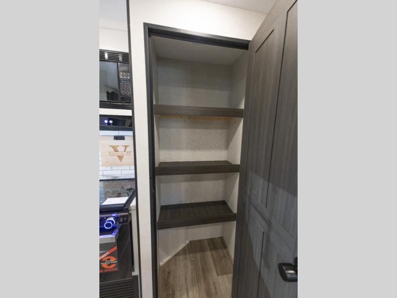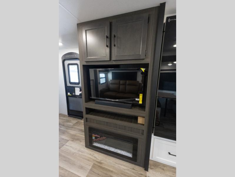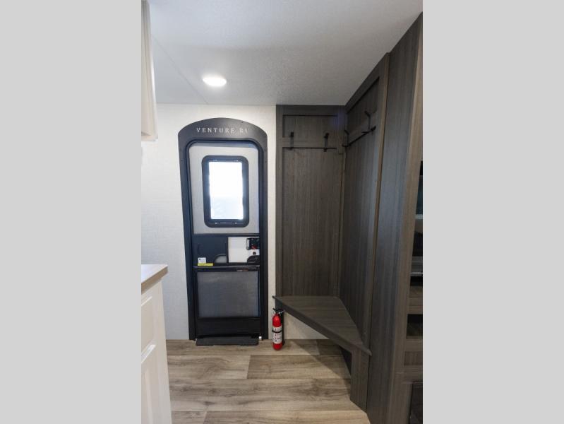 Every Venture RV SportTrek lightweight travel trailer is constructed to offer peace of mind and the comforts of home! Their purposeful residential kitchens are packed with handy features like a Furrion oven and three burner cooktop, a large stainless steel sink with a cover and dish drying rack, plus a 12V refrigerator. You will find plenty of storage throughout, including Safe-Tek hidden storage with a charging center and StorMore nightstands on either side of the bed behind the full-length closets. And the magnetic slam-latch baggage doors and spacious pass-through storage area will hold your outdoor gear in place. They even come with a hot and cold exterior shower and SporTrek's Weather Shield which includes a forced air heated and enclosed underbelly, high output A/C ducting, and more features that will let you extend your camping season. You will also love the new residential upgraded furniture, Serta memory foam mattress, barn style passage doors, and many more comforts!